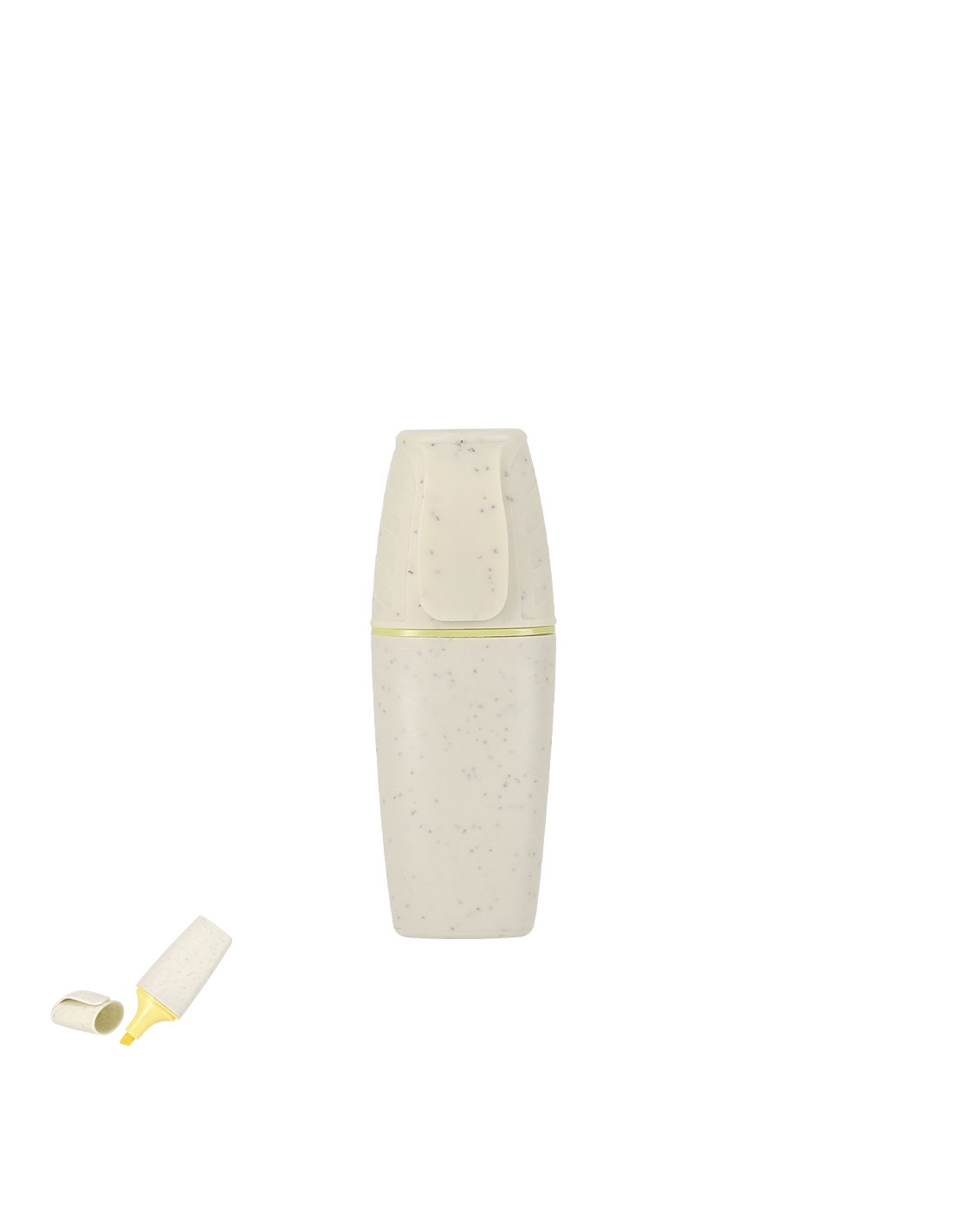 Original y práctico marcador fluorescente fabricado de Caña de trigo en acabado mate con clip en el capuchón. La caña de trigo fomenta la utilización de materias primas naturales, reduciendo así las emisiones contaminantes.