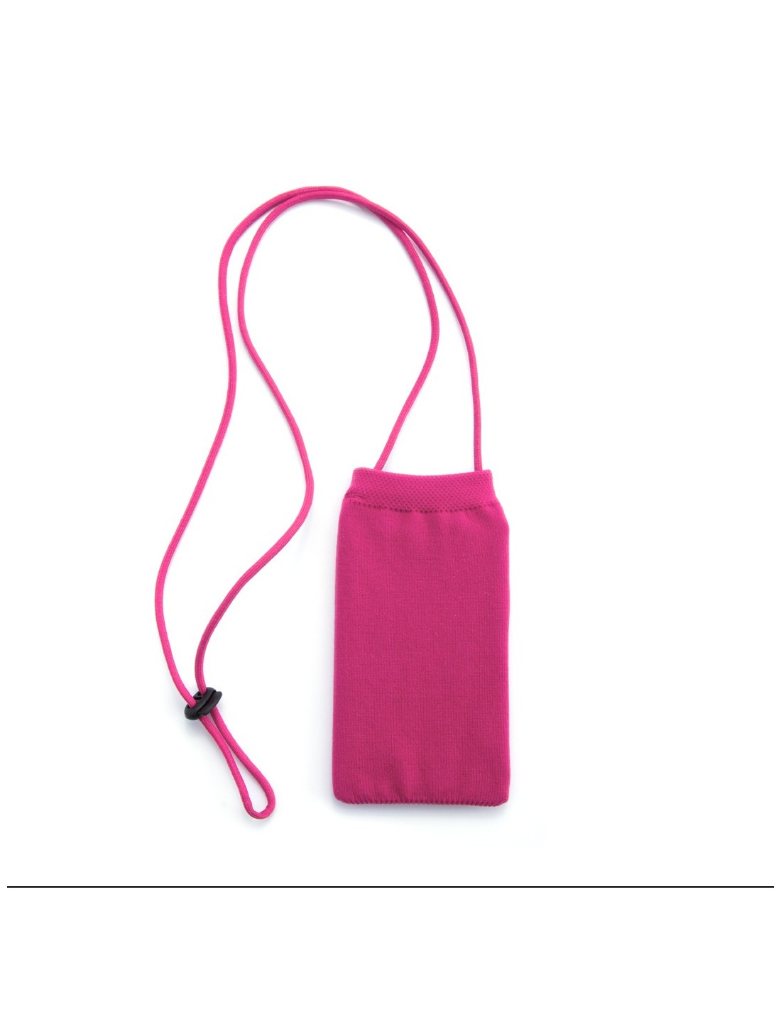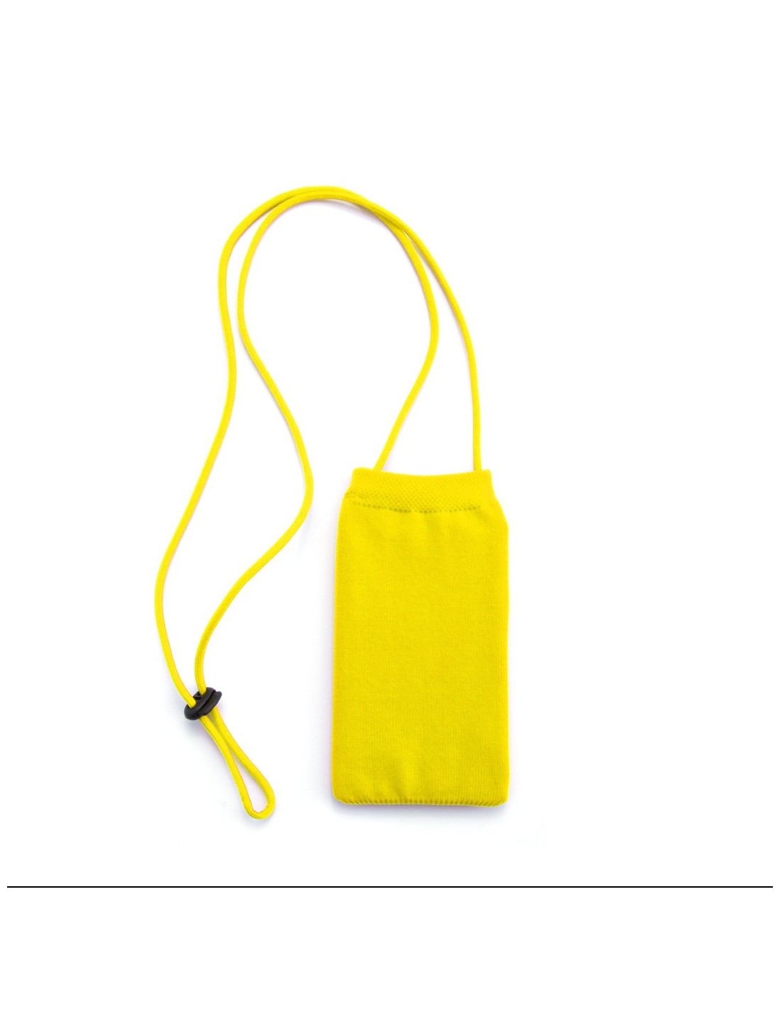 Portatodo en suave tejido de punto en poliéster elástico, en vivos colores y con cinta de transporte ajustable a juego.