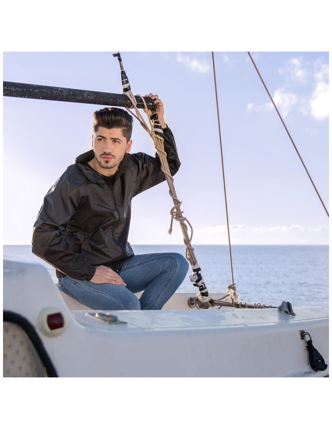 Impermeable en resistente poliéster 210T en variada gama de colores. Con capucha de cremallera integrada en cuello y cordones de ajuste, cierre principal de cremallera y bolsillos laterales e interiores. Cordón en cintura con accesorio de ajuste. Disponib