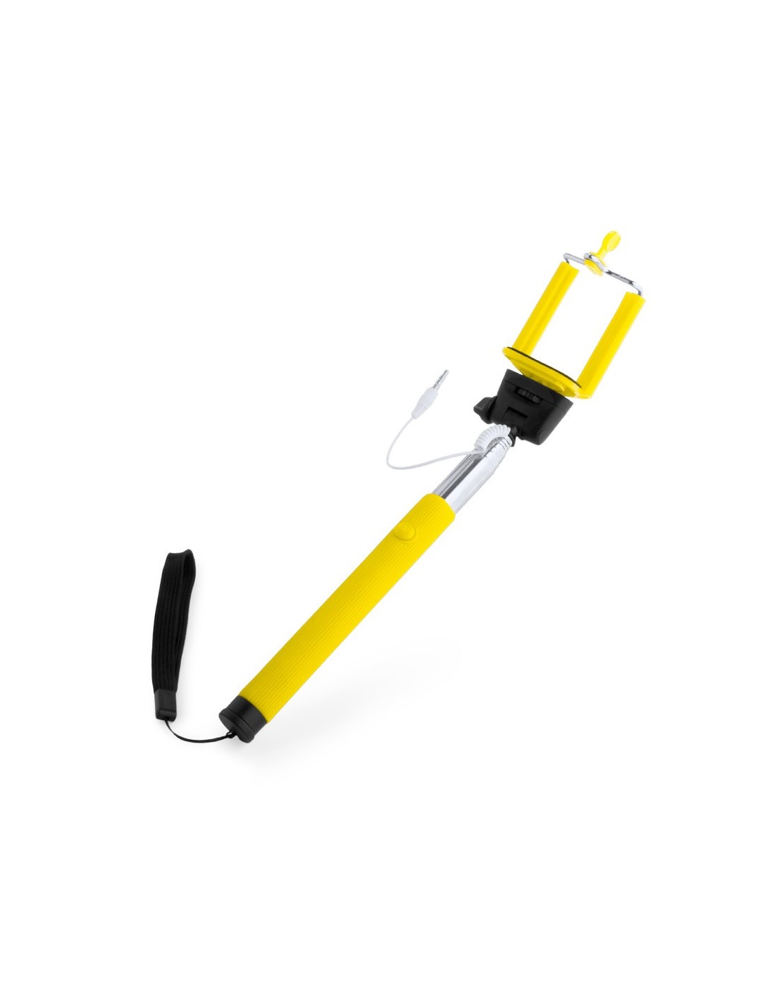 Divertido palo selfie plegable en diseño bicolor con conexión jack de 3,5mm, sistema antigiro, confortable mango de suave tacto y disparador integrado. Recorrido de acero inox y sistema de almohadillas en el soporte para así ofrecer un óptimo ajuste y pro