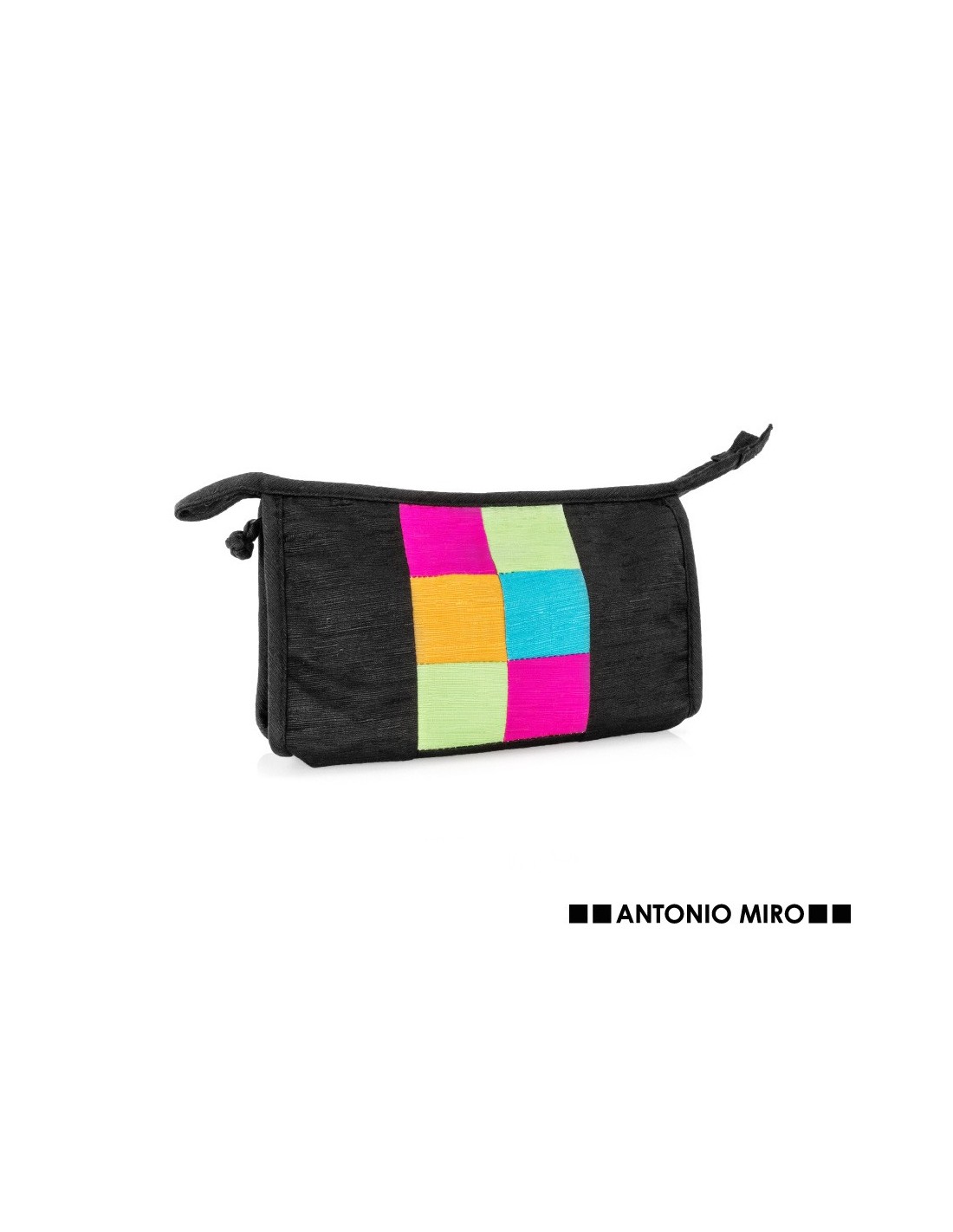 Neceser multiusos de Antonio Miró en combinación de materiales microfibra y nylon. Con original diseño multicolor, cierre de cremallera y asa de transporte. Logotipo de la marca en etiqueta exterior.