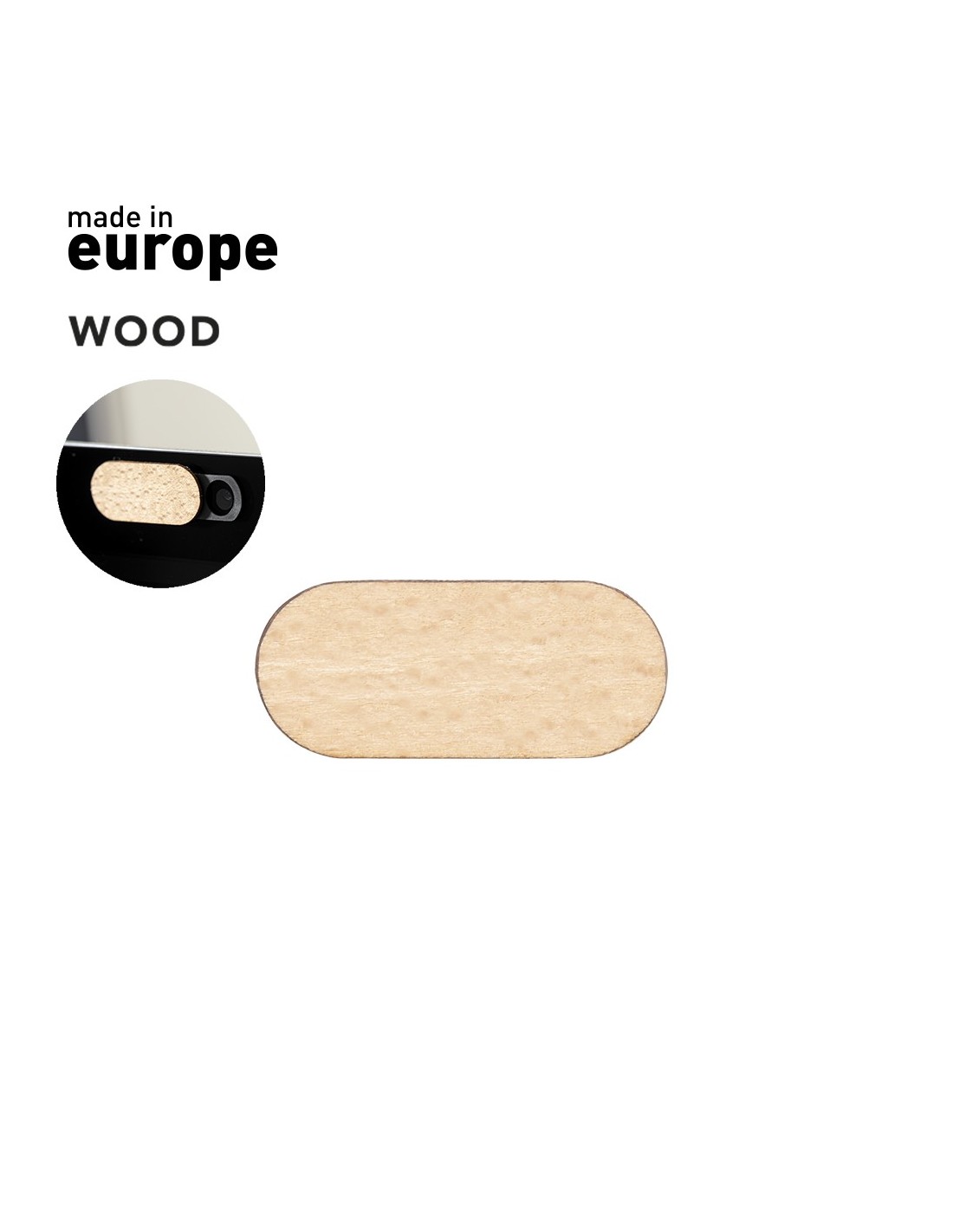 Tapa webcam deslizante de línea nature y fabricación europea. Hecha en madera, para cubrir la cámara de los dispositivos electrónicos y asegurar la protección de la privacidad. Con adhesivo de fijación.
