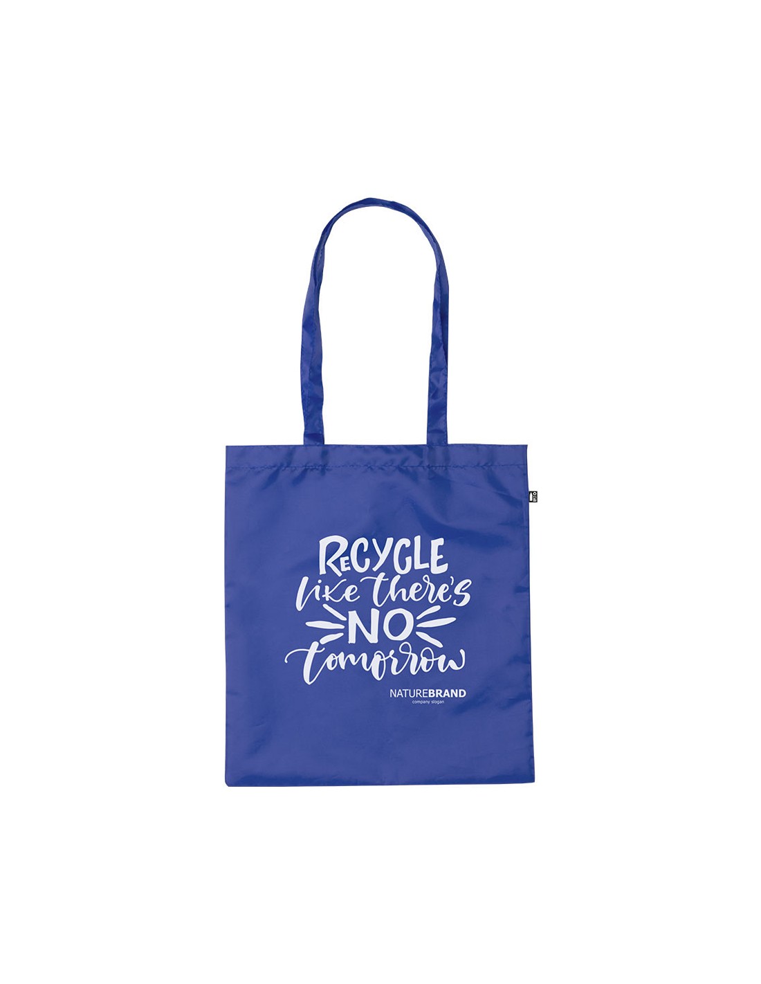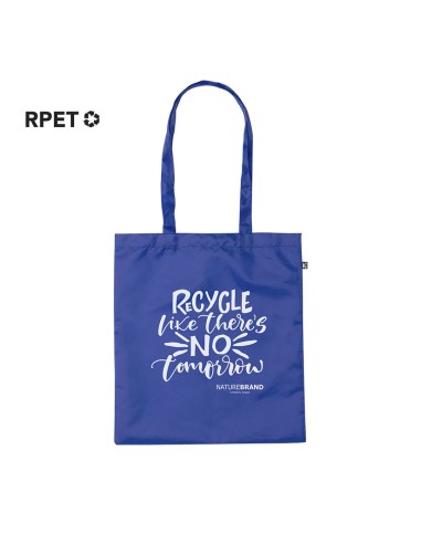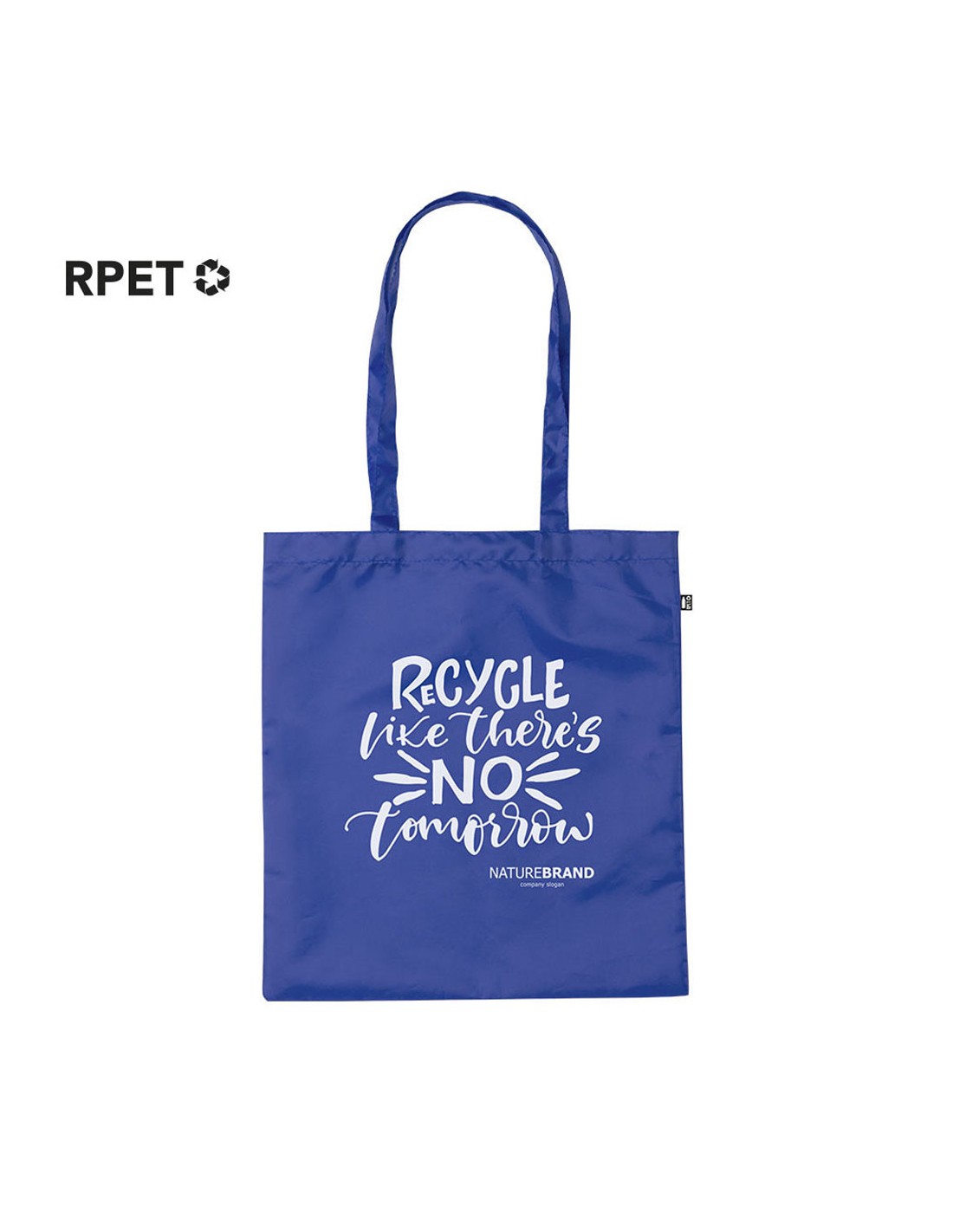 Bolsa ecológica en resistente material RPET, elaborado a partir de plástico reciclado, para así fomentar la reutilización de residuos plásticos y ayudar a la sostenibilidad del planeta. En variada gama de colores, con asas largas reforzadas de 70cm y acabado cosido. Resistencia hasta 10kg de peso.