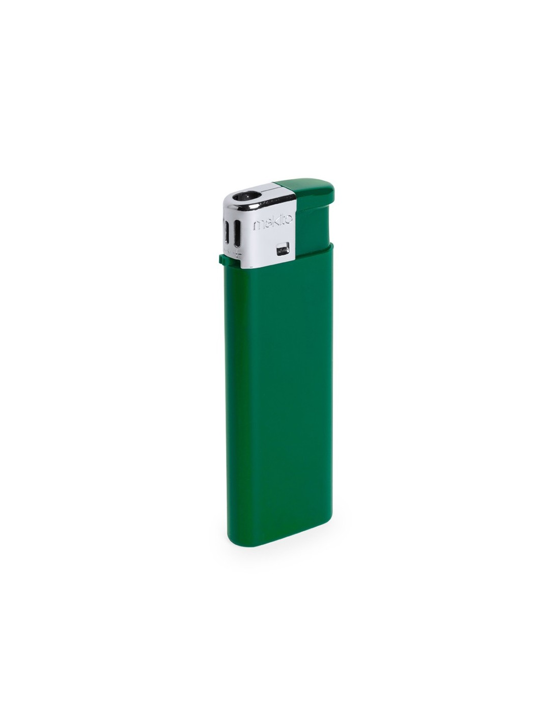 Encendedor a gas recargable, de mecanismo eléctrico en variada gama de vivos colores. Con regulador de llama y protección infantil.