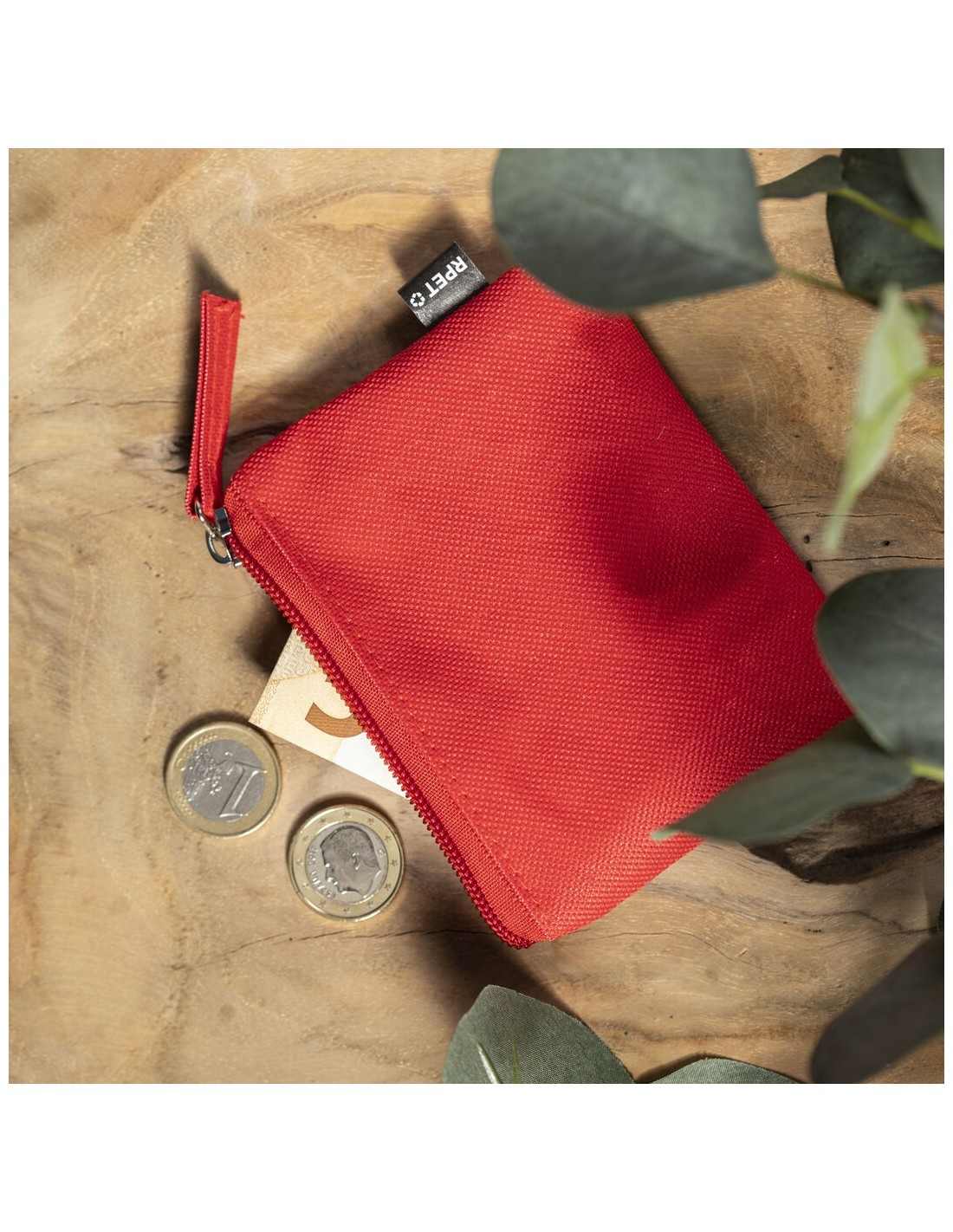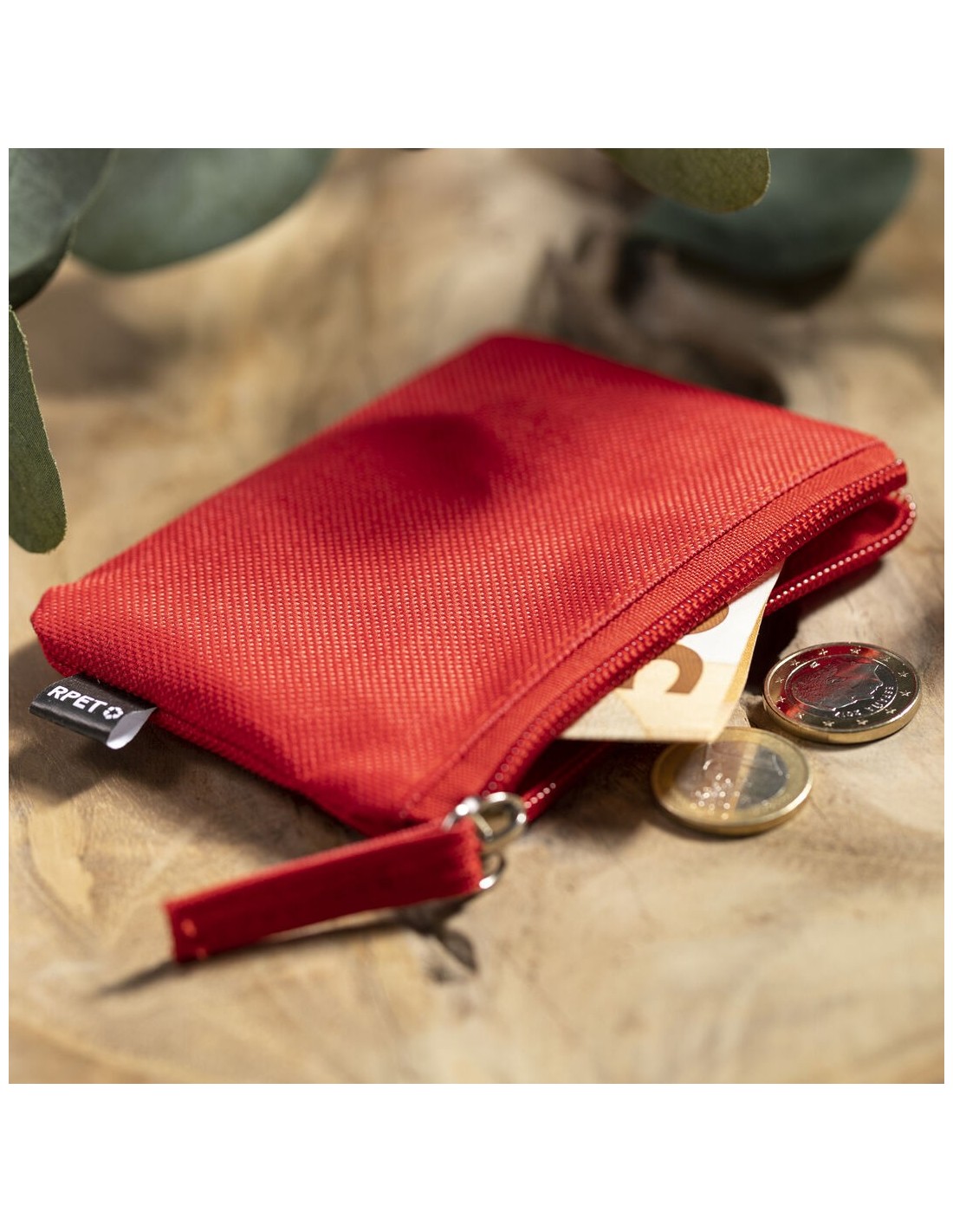Monedero de línea nature en resistente 600D RPET, elaborado a partir de plástico reciclado para así fomentar la reutilización de residuos plásticos y contribuir a la sostenibilidad del planeta. Con cierre de cremallera y tirador a juego. Disponible en variada gama de colores, con distintivo RPET en etiqueta exterior.