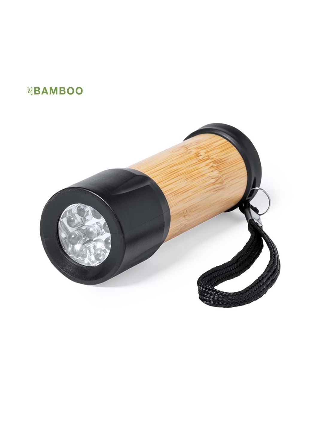 Linterna fabricada en bambú y resistente ABS negro. Con 9 LEDs, correa de sujeción y alimentación a pilas (3xAAA no incluidas). Presentada en caja individual de diseño kraft. Materiales como el bambú fomentan la utilización de materias primas naturales reduciendo las emisiones contaminantes. Además, el bambú proviene de una planta de gran resistencia y versatilidad, con crecimiento y regeneración rápida, siendo una excelente alternativa al uso de madera tradicional.