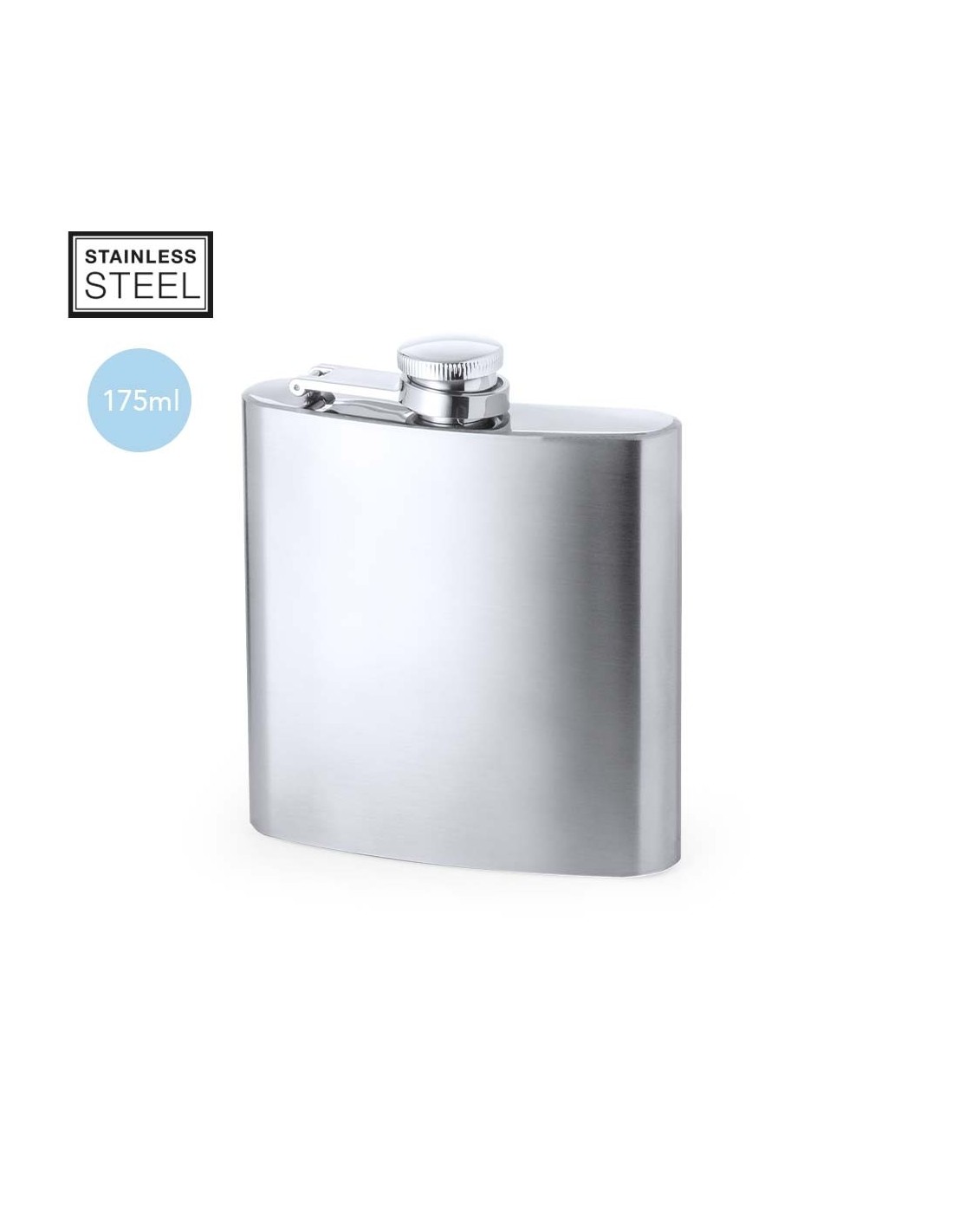 Petaca de 175 ml de capacidad con cuerpo de acero inox y tapón de seguridad a rosca. De diseño ergonómico para guardar cómodamente en el bolsillo. Presentada en caja individual de diseño eco en cartón kraft.