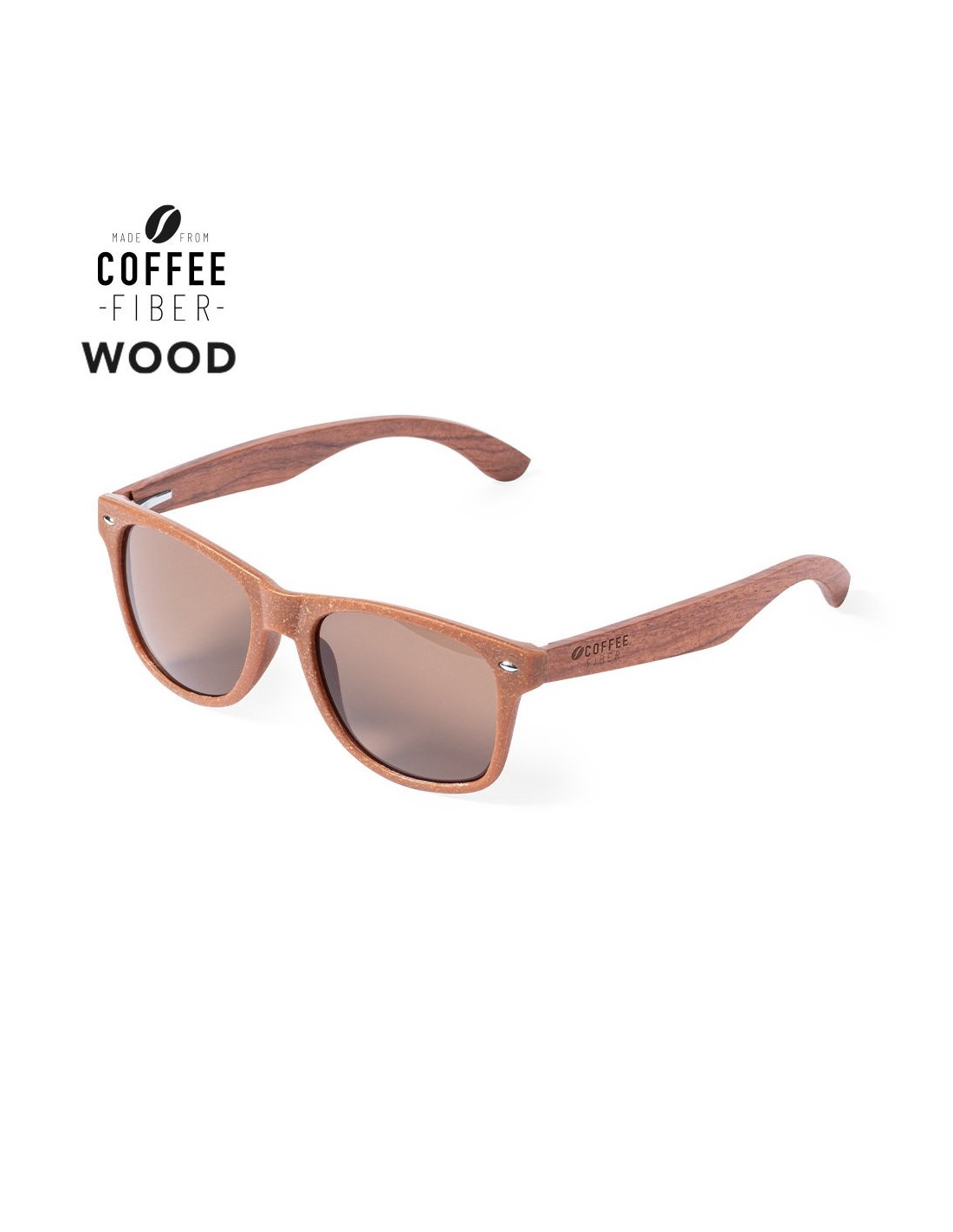 Gafas de sol de línea nature con protección UV 400. Montura fabricada en fibra de café y patillas en madera natural a juego, con lentes en tono marrón. Distintivo fibra de café inyectado en molde de patilla izquierda. Presentación en caja individual de diseño kraft. La fibra de café es una solución circular que se obtiene de la utilización de los residuos producidos en la obtención del café. Una alternativa sostenible que favorece la reducción del uso de plásticos, ahorrando energía en su proceso de fabricación y contribuyendo al cuidado del medio ambiente.