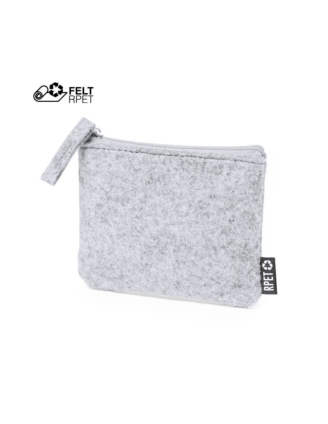 Elegante monedero fabricado en fieltro RPET. Compartimento principal con cierre de cremallera y tirador a juego. Con distintivo fieltro RPET en la etiqueta exterior. El fieltro RPET es fruto de la combinación del proceso de reciclaje de materiales plásticos junto con la técnica milenaria de fabricación del fieltro, dando como resultado un material de eco-tendencia que, además de ser de origen reciclado, también se convierte en reciclable.