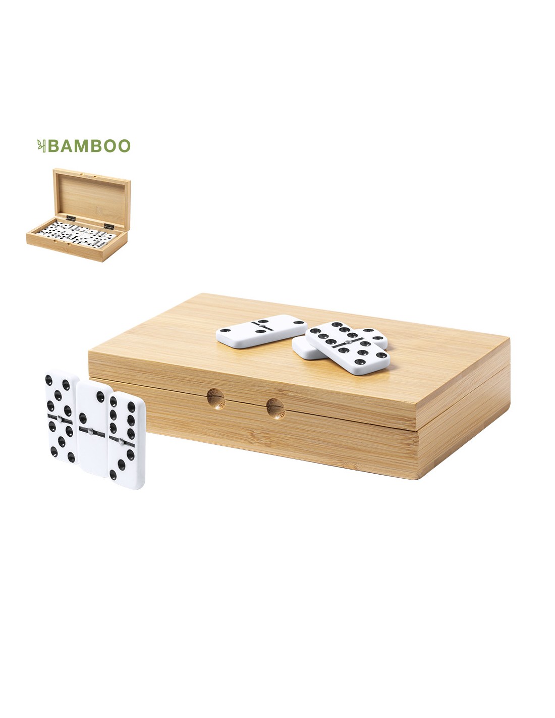 Dominó clásico de 28 piezas fabricadas en resistente melamina. Presentado en estuche individual de bambú lacado, con cierre imantado. Presentado en atractiva caja individual de diseño.