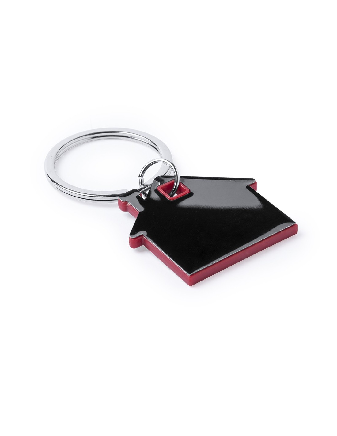 Llavero casita en original diseño con exterior en acero inox de tono gris espacial natural e interior en variada gama de colores. Presentado en bolsita individual con cartulina en elegante color gris.