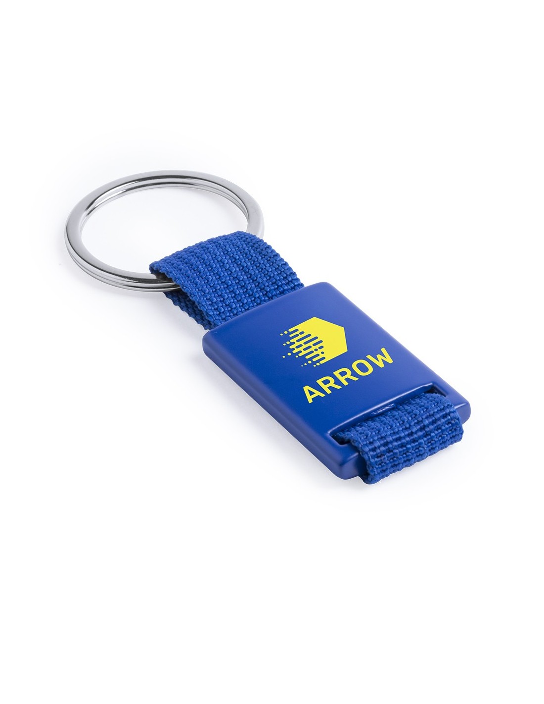 Llavero todoterreno de diseño monocromático, con cuerpo acabado en aluminio de vivos colores y resistente cinta de poliéster a juego. Presentado en bolsita individual con cartulina en elegante color gris.