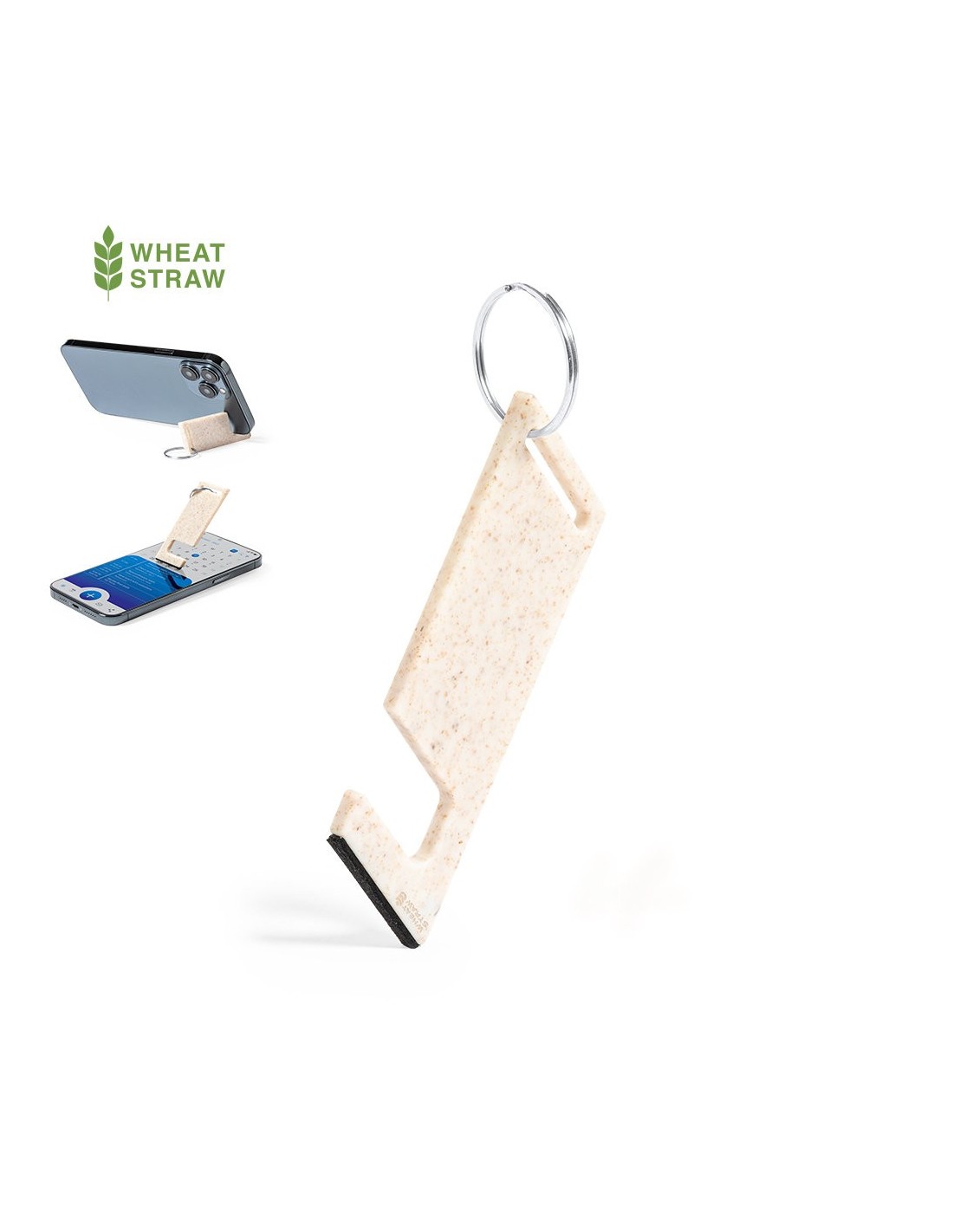 Llavero multifunción de línea nature fabricado en caña de trigo, para así fomentar la utilización de materias primas naturales y reducir las emisiones contaminantes. Con soporte para smartphone integrado y accesorio limpiapantallas incluido. Con distintivo caña de trigo en el cuerpo del llavero.