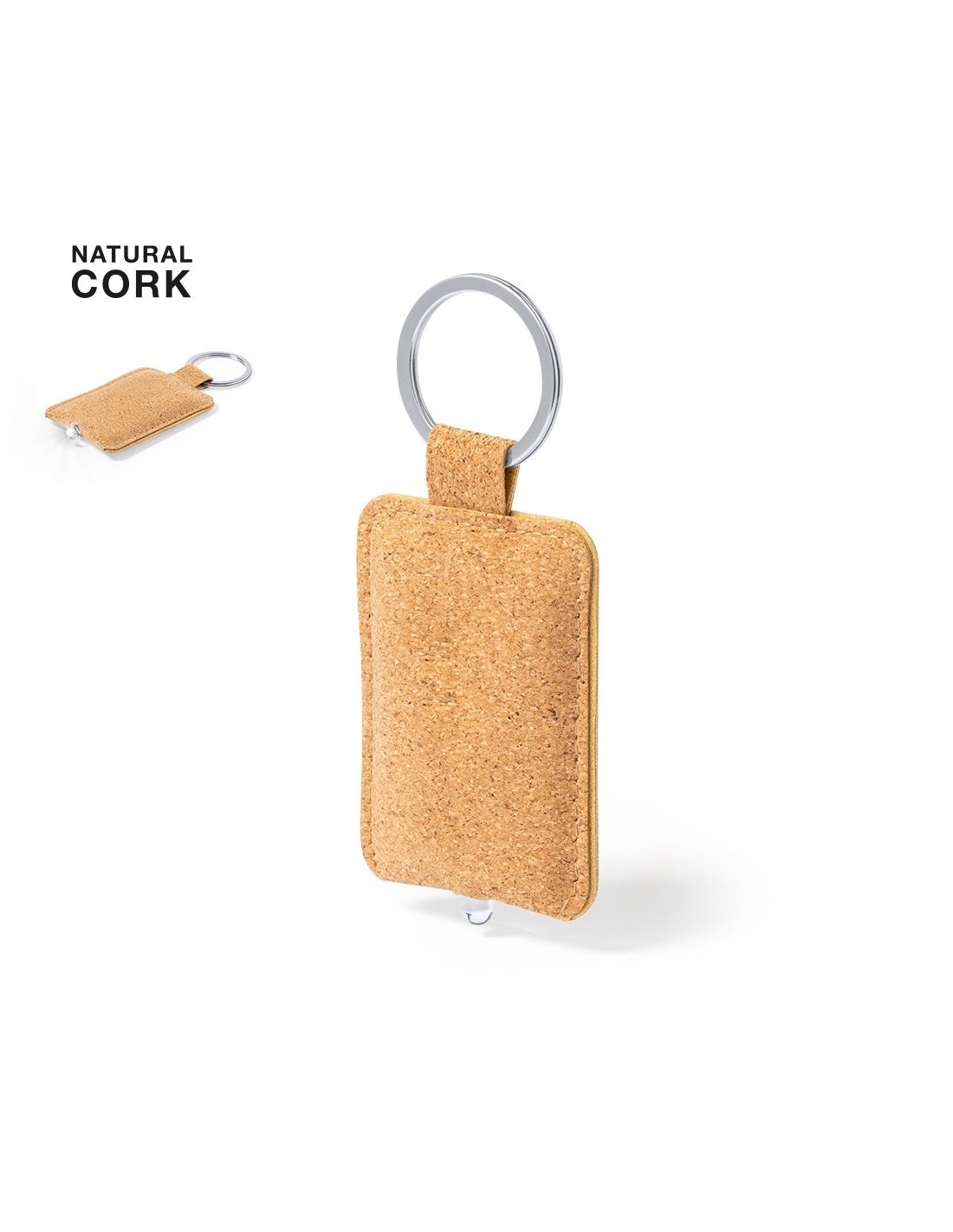 Llavero linterna de línea nature fabricado en corcho natural. Con luz led que se activa presionando el cuerpo del llavero. Con amplia superficie de marcaje y alimentación a pilas (de botón incluidas).