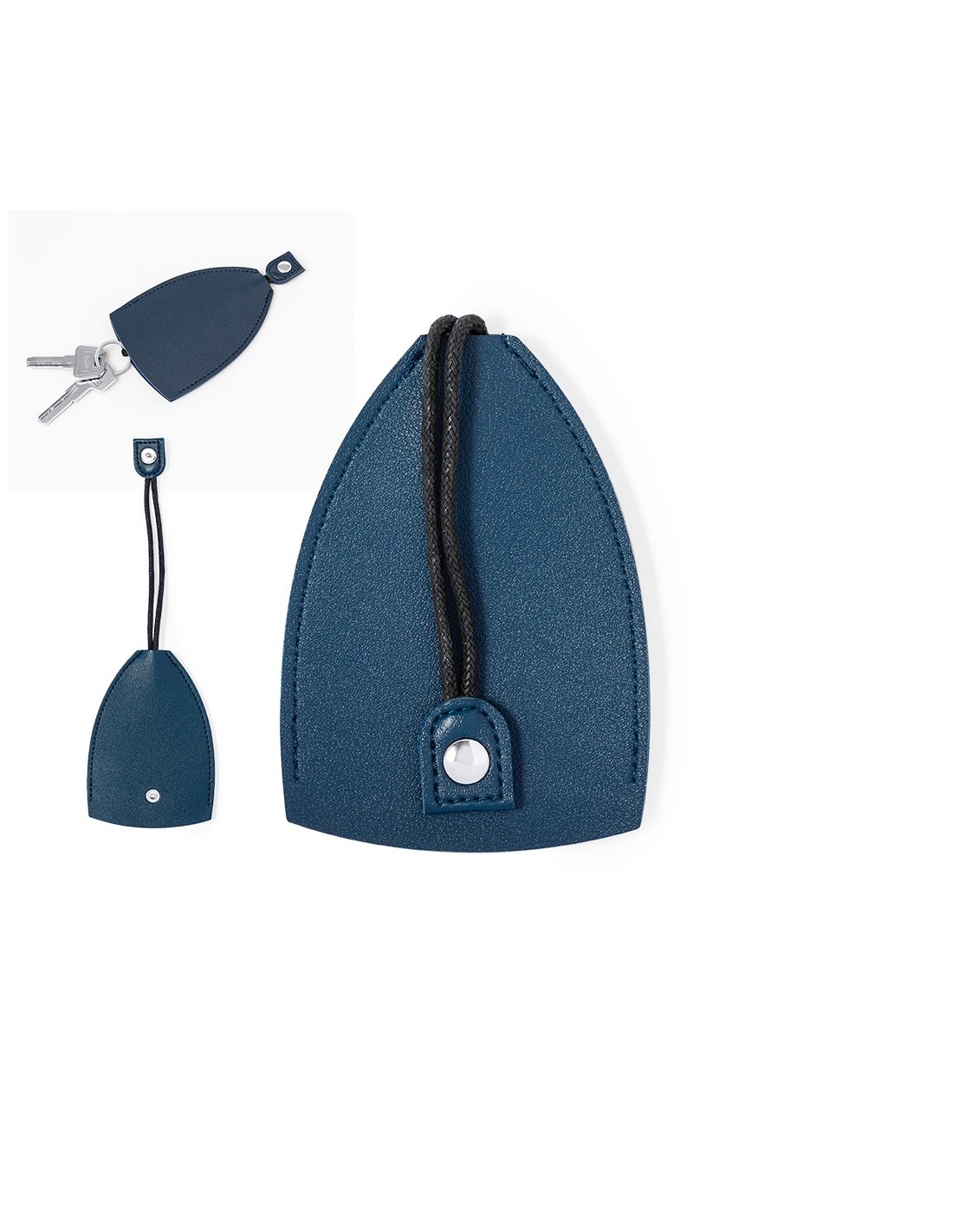 Original llavero-funda de polipiel para llevar siempre las llaves protegidas. Con mecanismo de guardado tirando del cordón y cierre de corchete. Disponible en variada gama de colores y presentado individualmente en bolsa de papel reciclado.