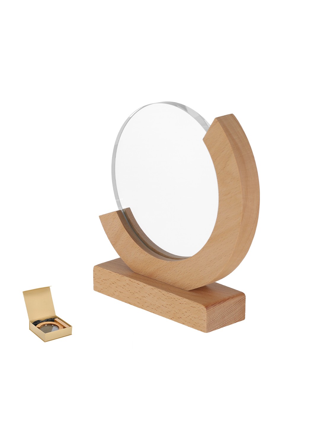 Placa trofeo de grueso cristal con elegante diseño circular con base en madera. Ideal para regalos personalizados, reconocimientos, premios y decoración. Presentada en estuche de protección individual en acabado Kraft.
