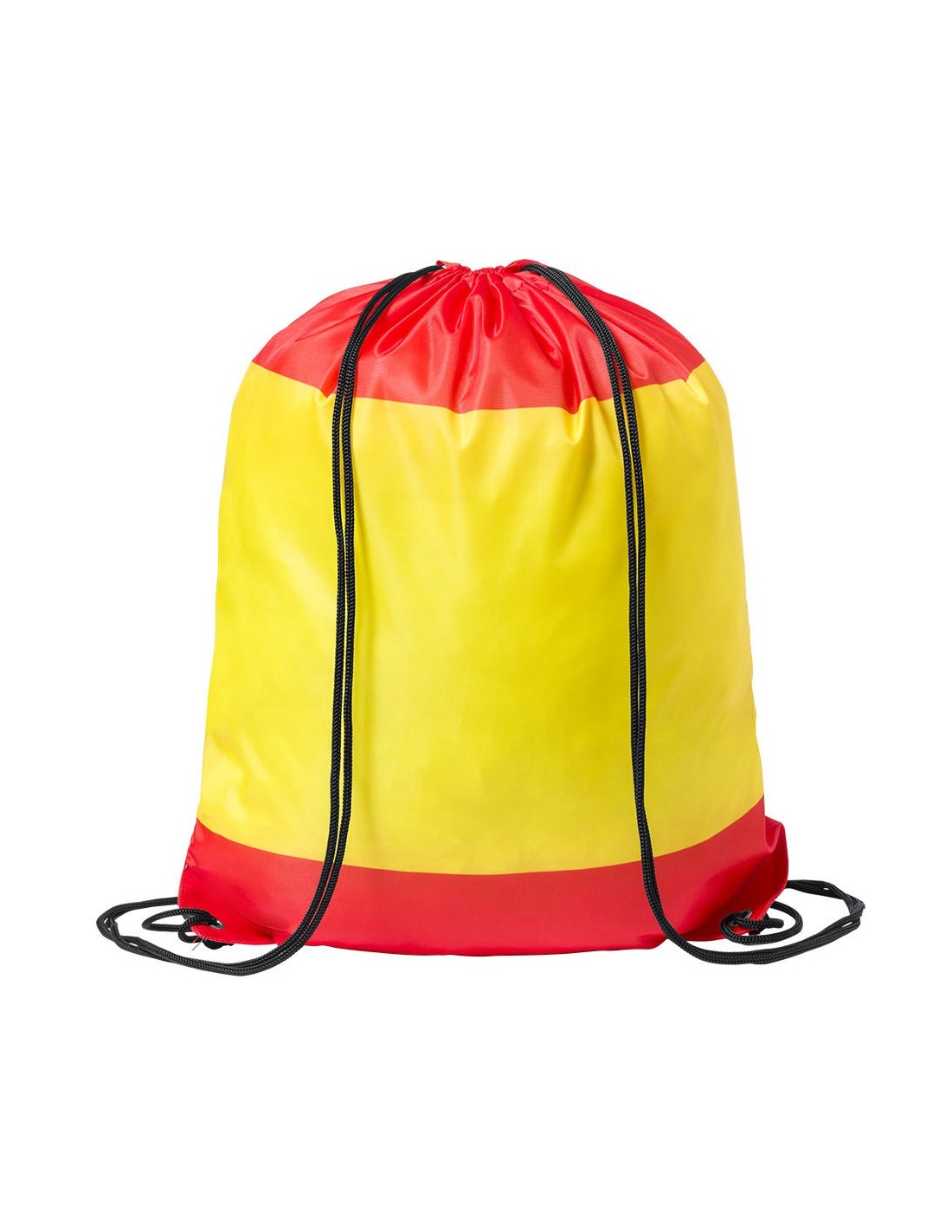 Mochila de cuerdas de suave poliéster 210D y con diseño España. Con cuerdas autocierre en color negro, esquinas reforzadas en polipiel y resistentes argollas metálicas. Resistencia hasta 7kg de peso.