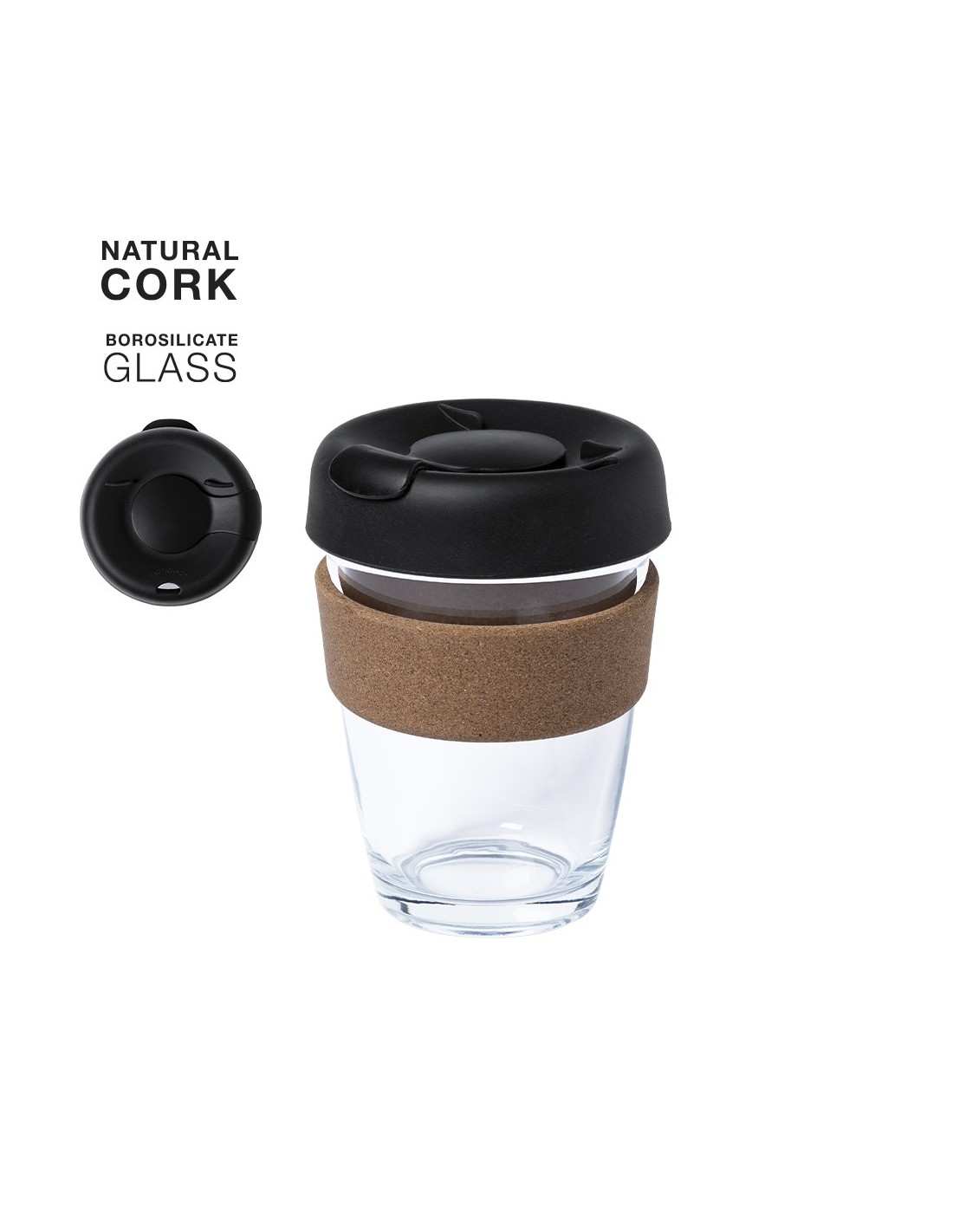 Vaso de línea nature de 350 ml de capacidad, con banda exterior en corcho natural y libre de BPA. Fabricado en cristal de borosilicato, que ofrece una resistencia y durabilidad excepcionales, alargando su vida útil y pudiendo ser reutilizado infinidad de veces. Tapa de seguridad con dosificador y abre fácil. Presentada en atractiva caja de diseño eco.