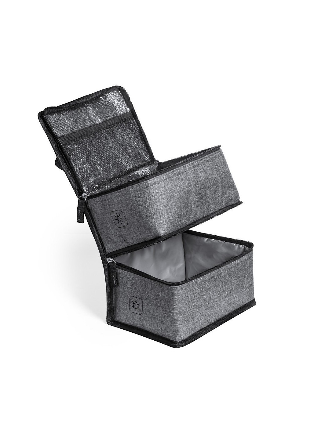 Práctica nevera de línea nature y doble compartimento fabricada en poliéster 600D RPET de alta calidad, elaborado a partir de plástico reciclado para así fomentar la reutilización de residuos plásticos y contribuir a la sostenibilidad del planeta. Asa de transporte reforzada, incluye 2 compartimentos con cierre de cremallera y doble tirador de tela, con distintivo RPET en etiqueta exterior: Compartimento superior diseñado para conservar el calor, con interior isotermo en aluminio. Compartimento inferior diseñado para conservar el frío, con interior isotermo en PEVA.