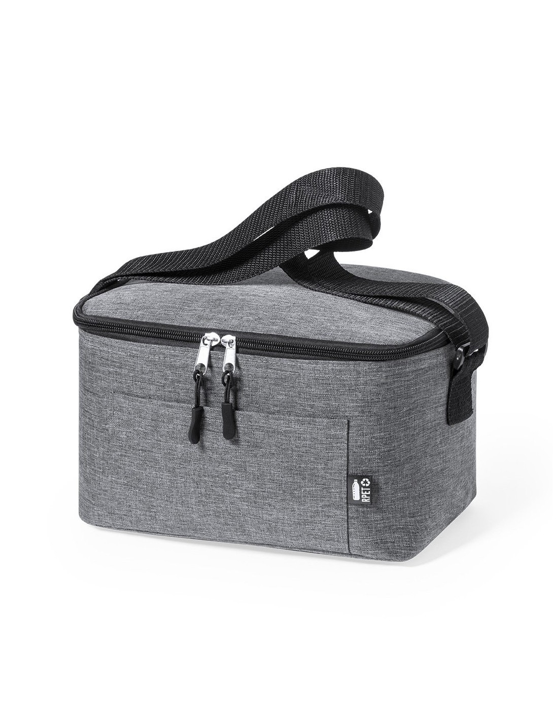 Nevera de línea nature y en resistente poliéster 600D RPET efecto melange, elaborado a partir de plástico reciclado para así fomentar la reutilización de residuos plásticos y contribuir a la sostenibilidad del planeta. Detalles en negro y base reforzada. Compartimento principal con cierre de cremallera e interior en aluminio. Incluye bolsillo exterior y cinta bandolera ajustable, con distintivo RPET en etiqueta exterior.