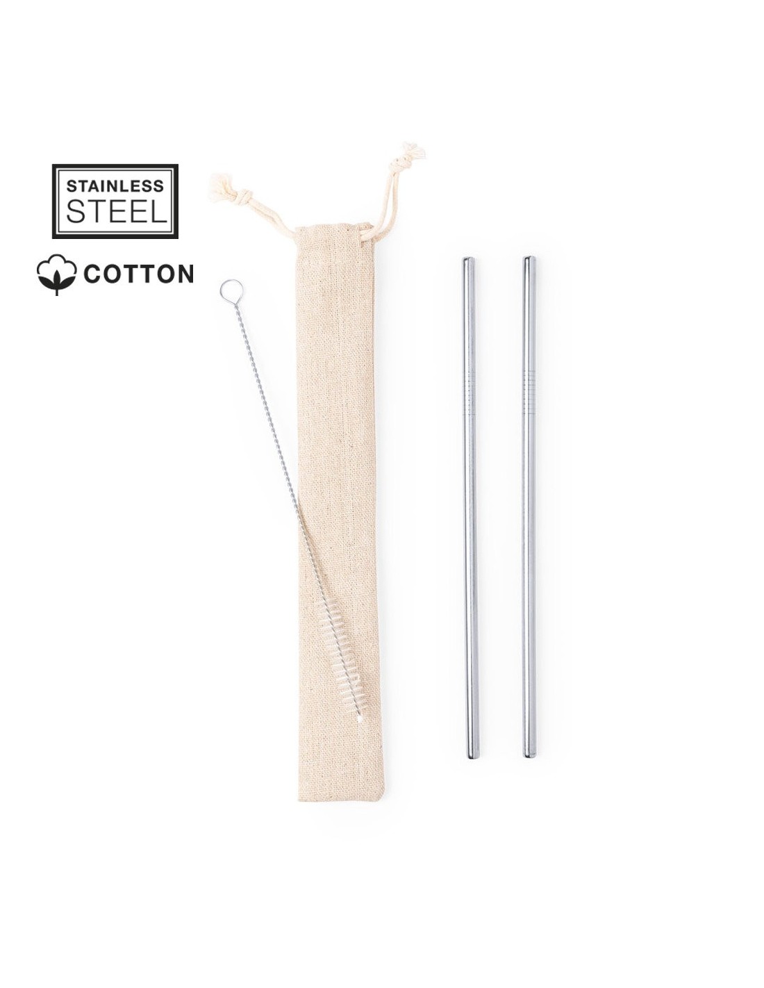 Set Pajitas. 2 Piezas. Reutilizable. Limpiador Incluido. Funda Algodón