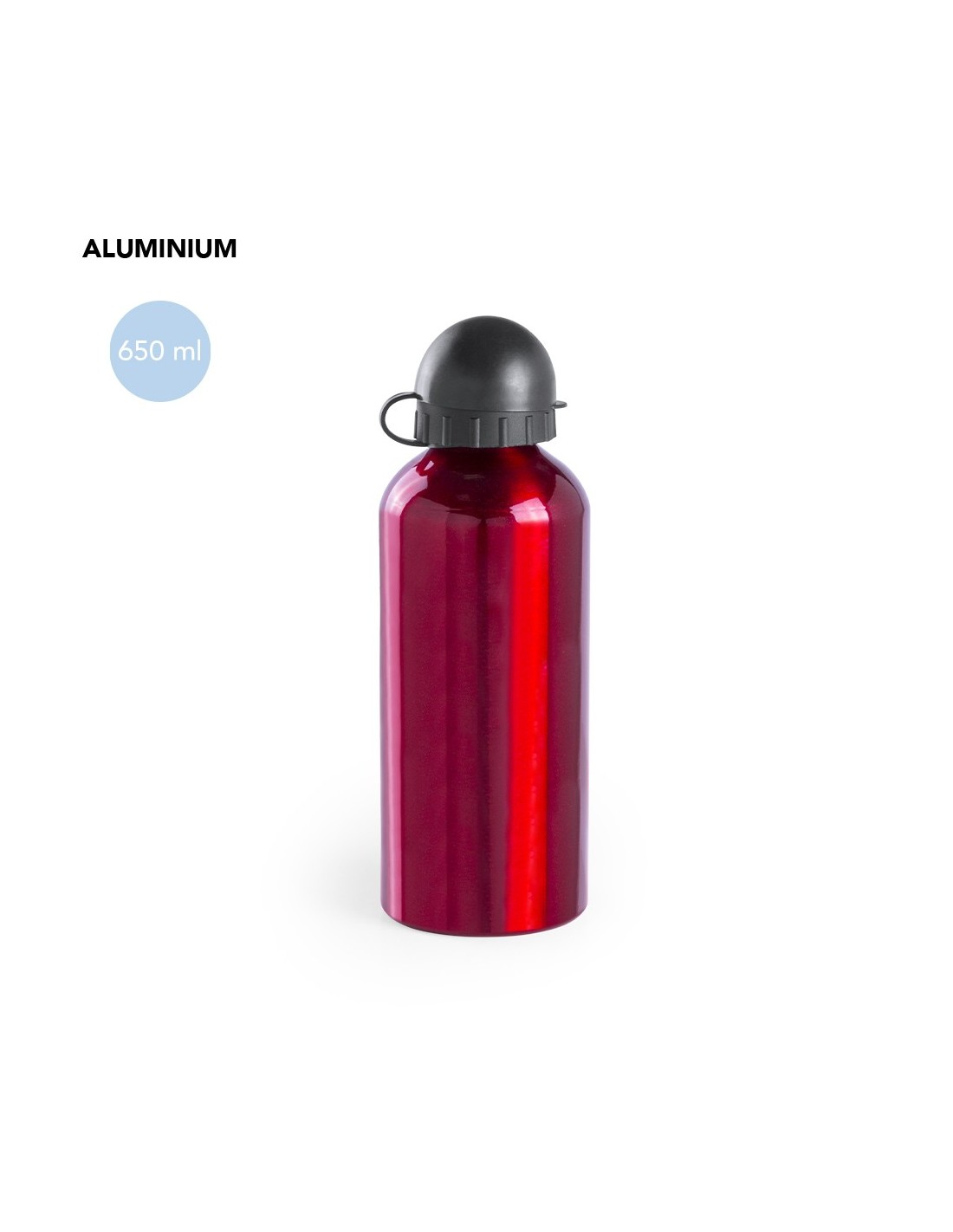 Bidón de 650ml de capacidad con cuerpo de acabado en aluminio en vivos y variados colores. Con tapón a rosca con dosificador de seguridad y capucha de cierre. Presentado en caja individual.