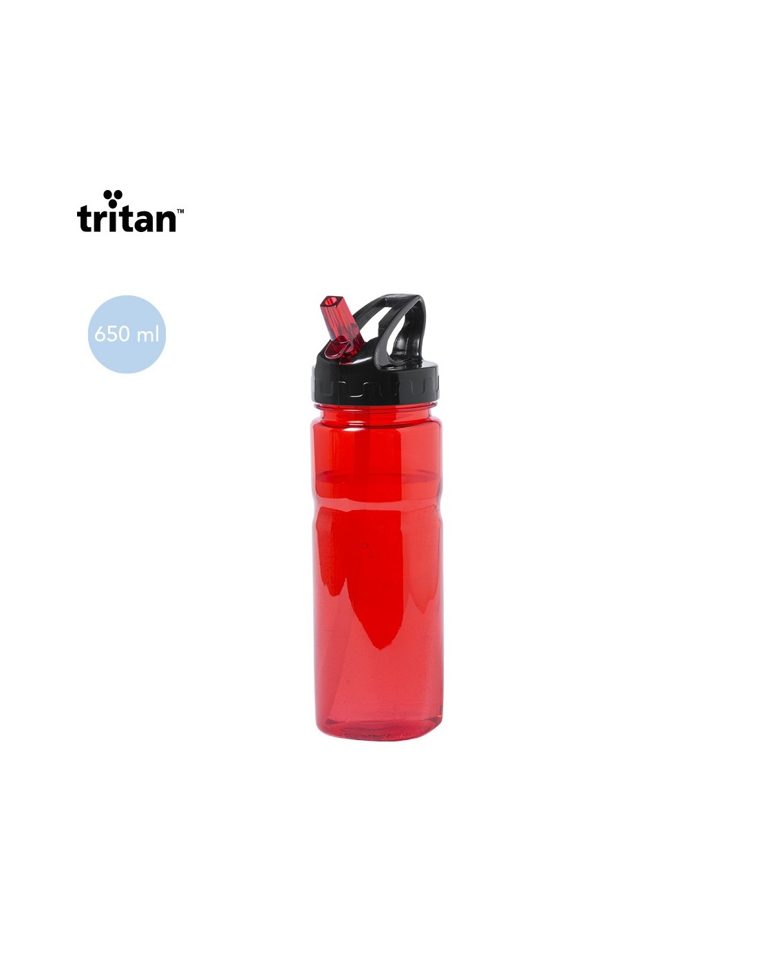Bidón en alta calidad de 650ml de capacidad con cuerpo acabado en material tritán de alta resistencia al calor y libre de BPA en variada gama de vivos colores. Con dosificador, tapón a rosca de seguridad y presentado en caja individual.