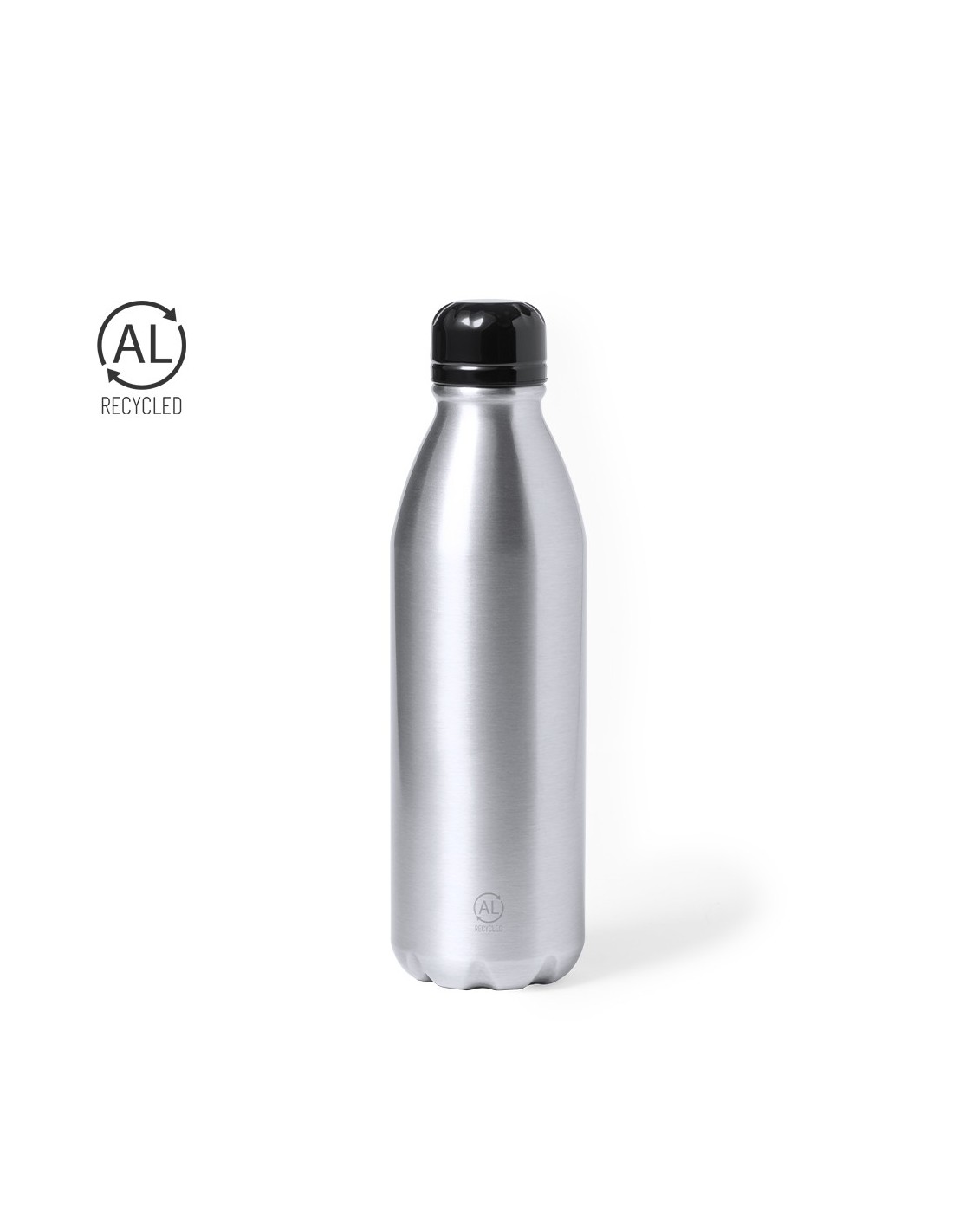 Bidón de 750 ml de capacidad. Fabricado en aluminio reciclado, con posibilidades de reciclaje casi infinitas, sin perder sus propiedades originales y consumiendo menos energía en este proceso. De acabado mate, con tapón a rosca en negro y libre de BPA. Presentado en caja individual de diseño kraft.