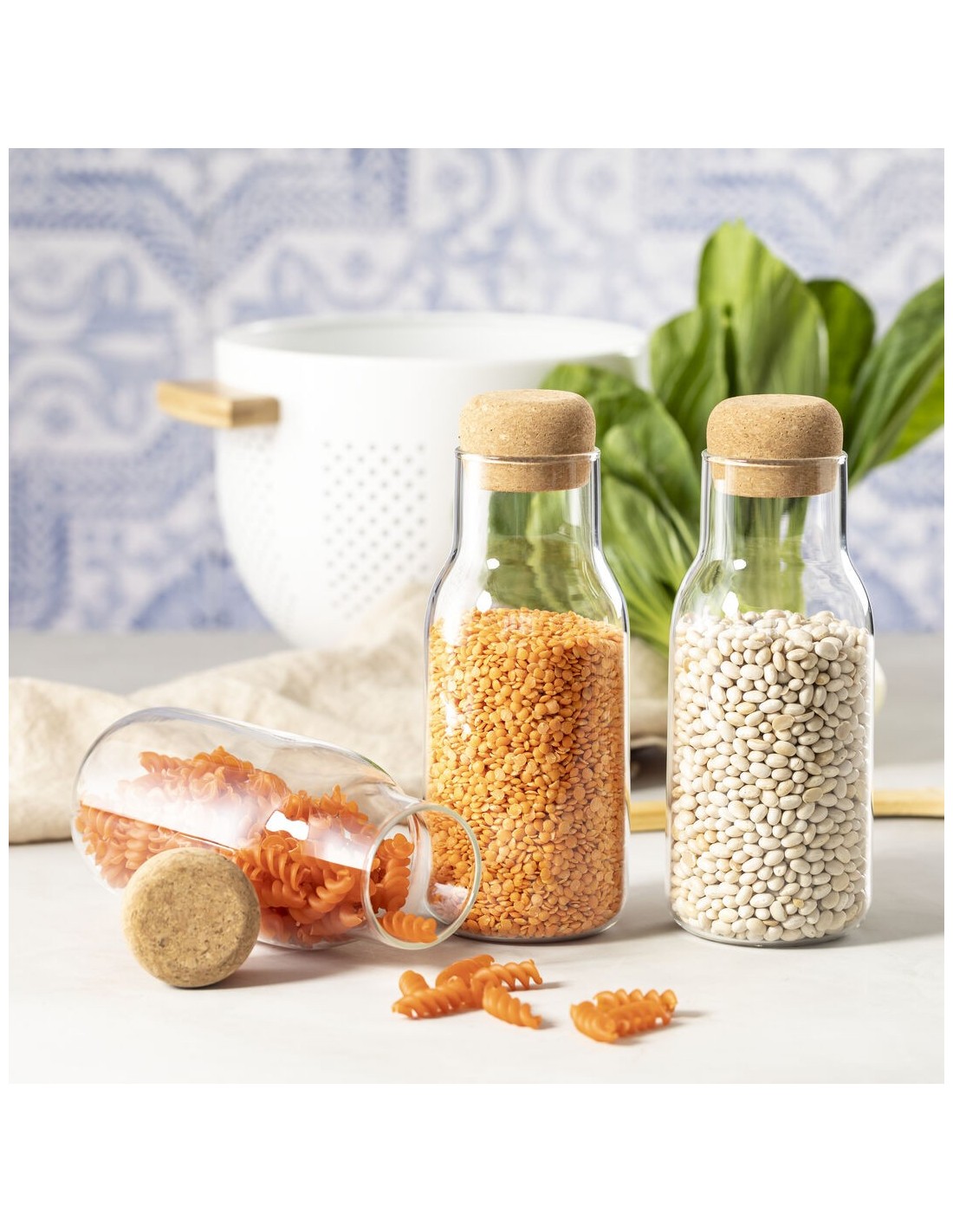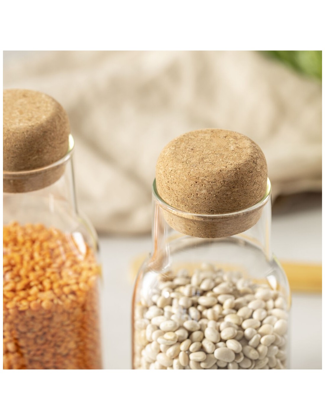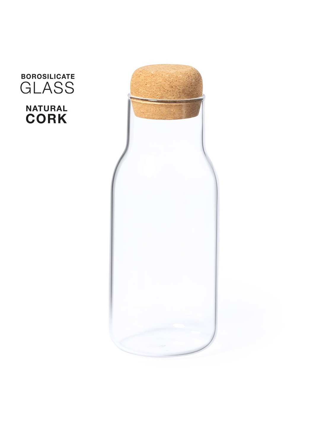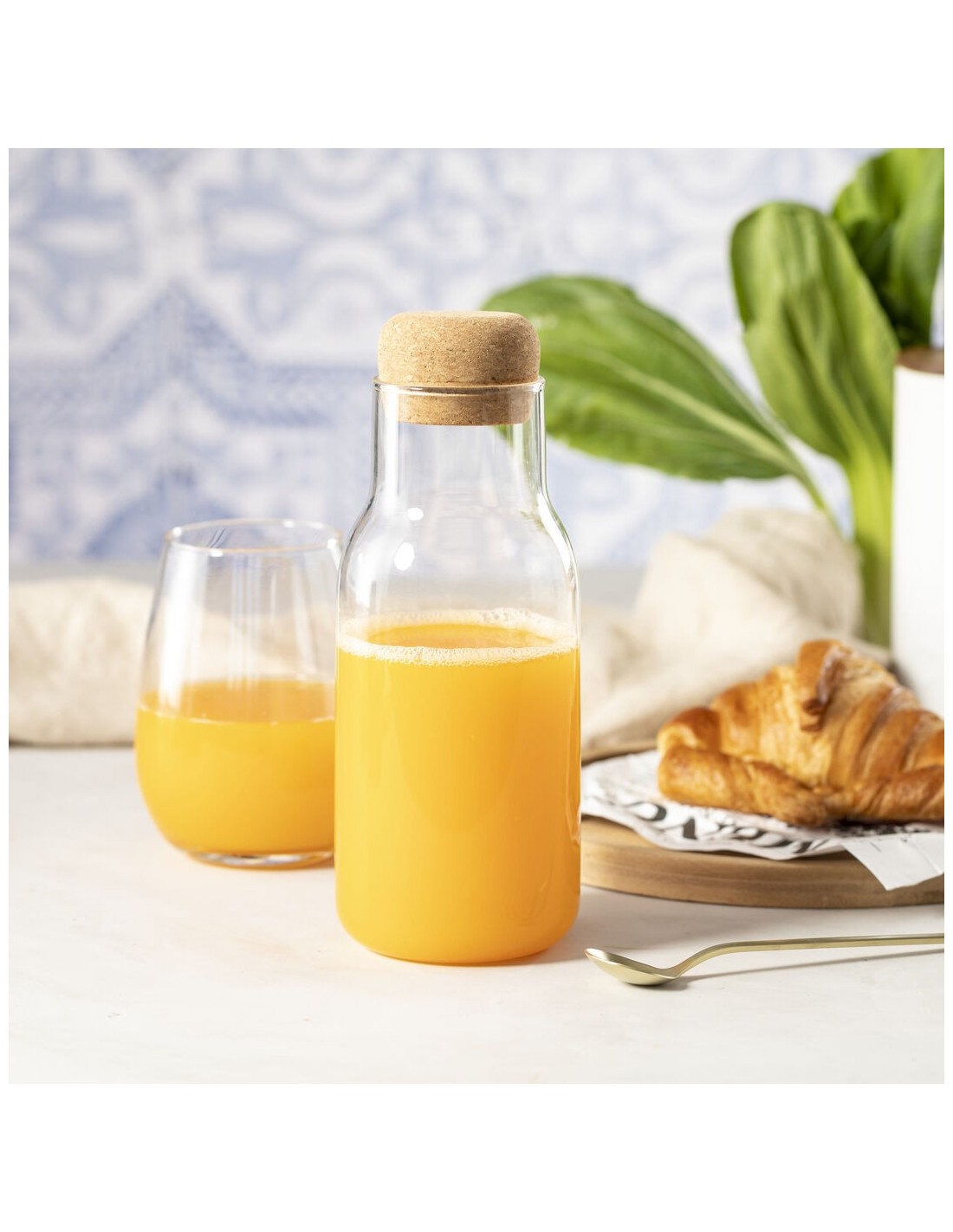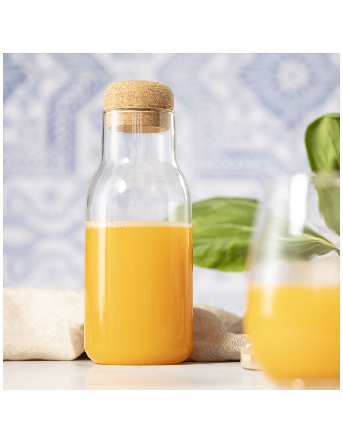 Botella de 800 ml de capacidad y diseño innovador que permite presentar tus bebidas preferidas y mantener ordenados diferentes ingredientes en tu cocina de manera elegante y distinguida. Fabricado en cristal de borosilicato, con tapón de corcho natural. El cristal de borosilicato ofrece una resistencia, estética y durabilidad excepcionales, convirtiéndolo en una idea de regalo perfecta para la conservación y presentación de bebidas, o bien como objeto de decoración. Presentado en caja individual de diseño eco en cartón kraft.
