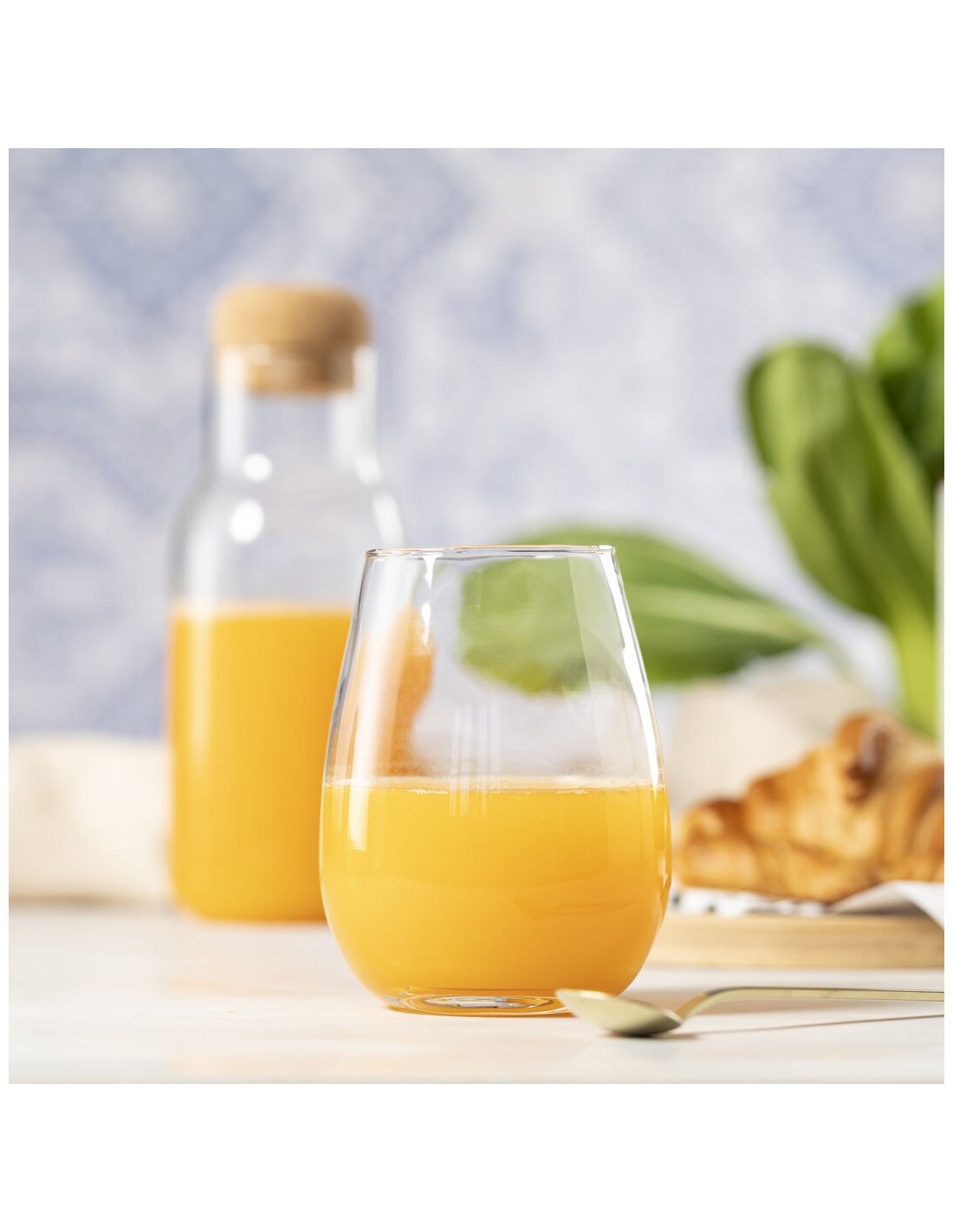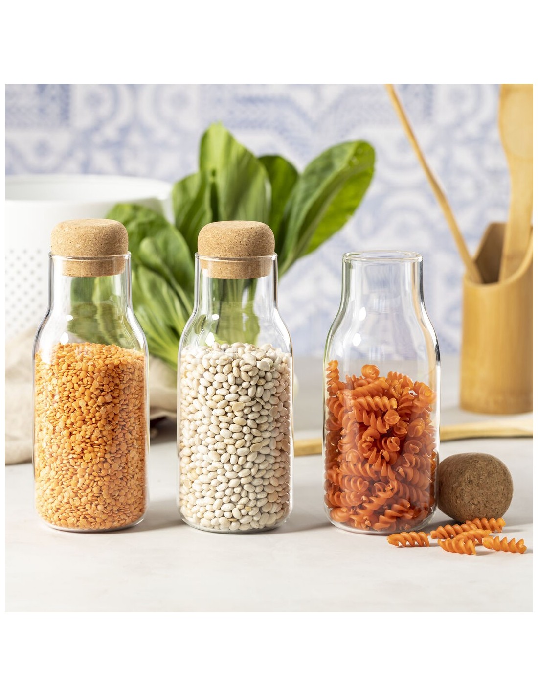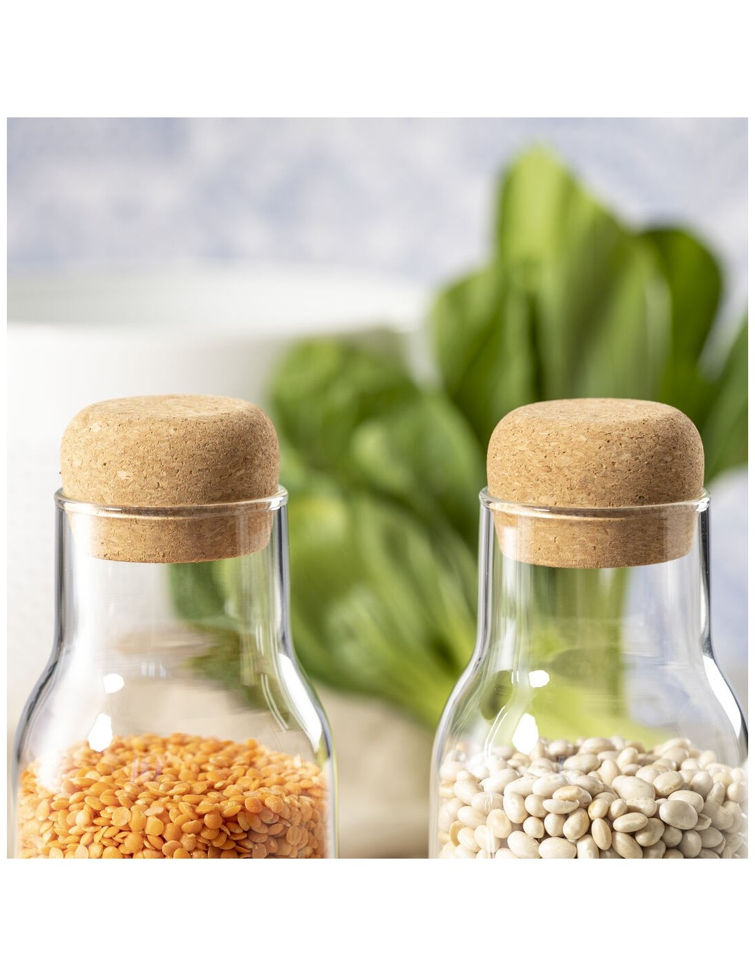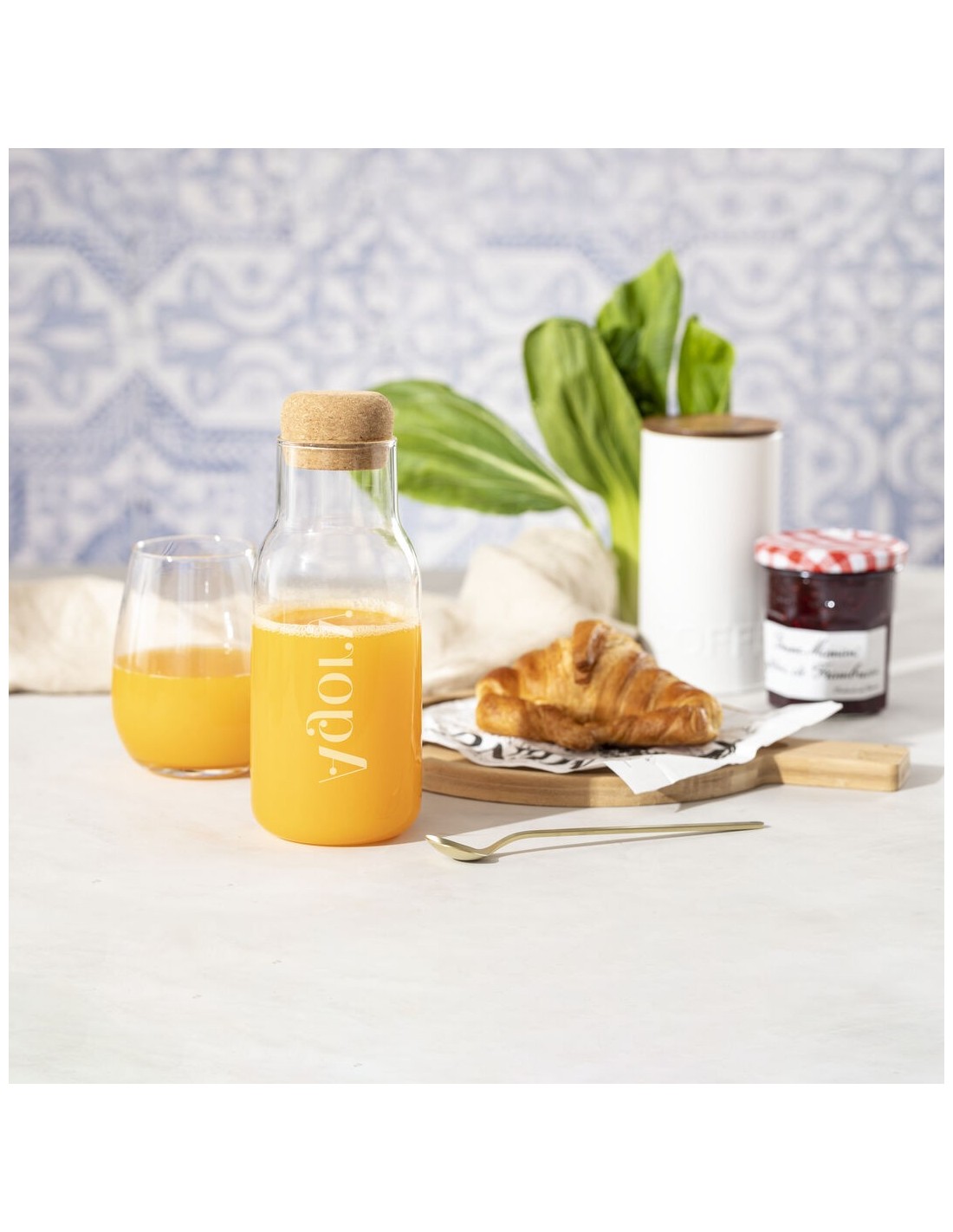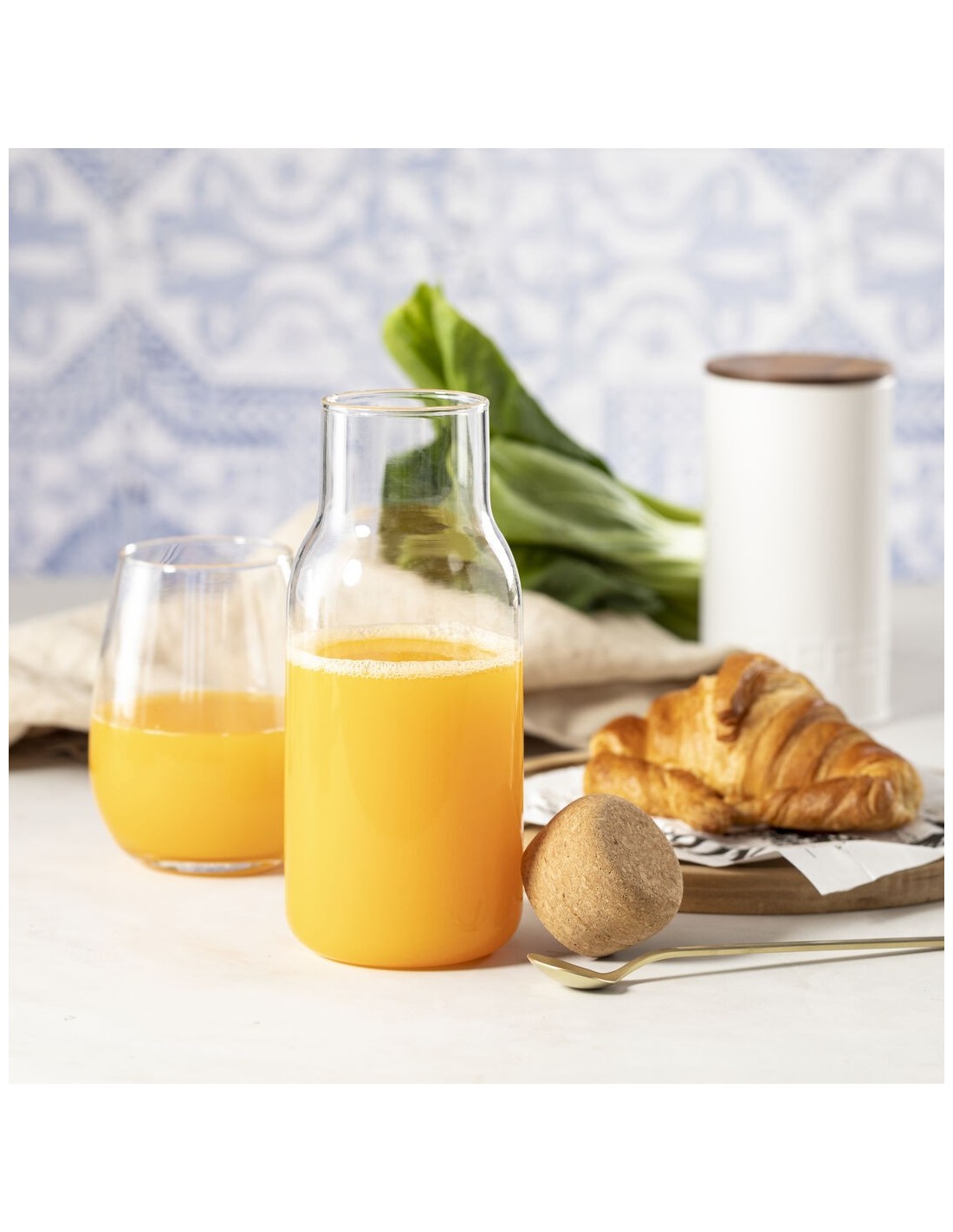 Botella de 800 ml de capacidad y diseño innovador que permite presentar tus bebidas preferidas y mantener ordenados diferentes ingredientes en tu cocina de manera elegante y distinguida. Fabricado en cristal de borosilicato, con tapón de corcho natural. El cristal de borosilicato ofrece una resistencia, estética y durabilidad excepcionales, convirtiéndolo en una idea de regalo perfecta para la conservación y presentación de bebidas, o bien como objeto de decoración. Presentado en caja individual de diseño eco en cartón kraft.