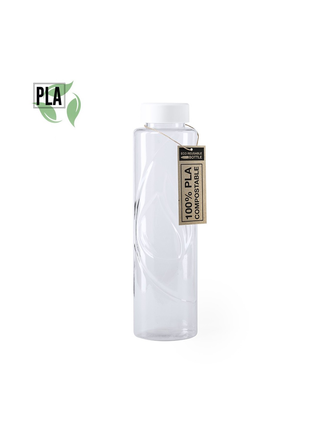 Bidón de linea nature de 830 ml de capacidad. Fabricado en resistente material PLA -Ácido PoliLáctico-, que se obtiene a partir de recursos 100% naturales como el almidón de maíz, la yuca o la caña de azúcar, pudiendo convertirse en 100% compostable al final de su ciclo de vida útil. Con distintivo PLA y presentado en bolsa individual de diseño eco.