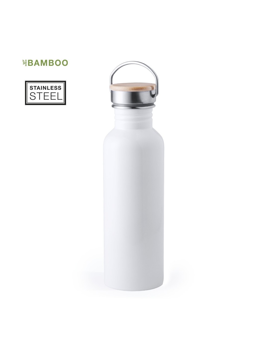 Bidón de estilo retro y 800ml de capacidad. Cuerpo en acero inox y en variada gama de colores brillantes. Tapón de seguridad a rosca en acero inox, con detalle en madera y asa de transporte vintage. Presentado en una atractiva caja de diseño.