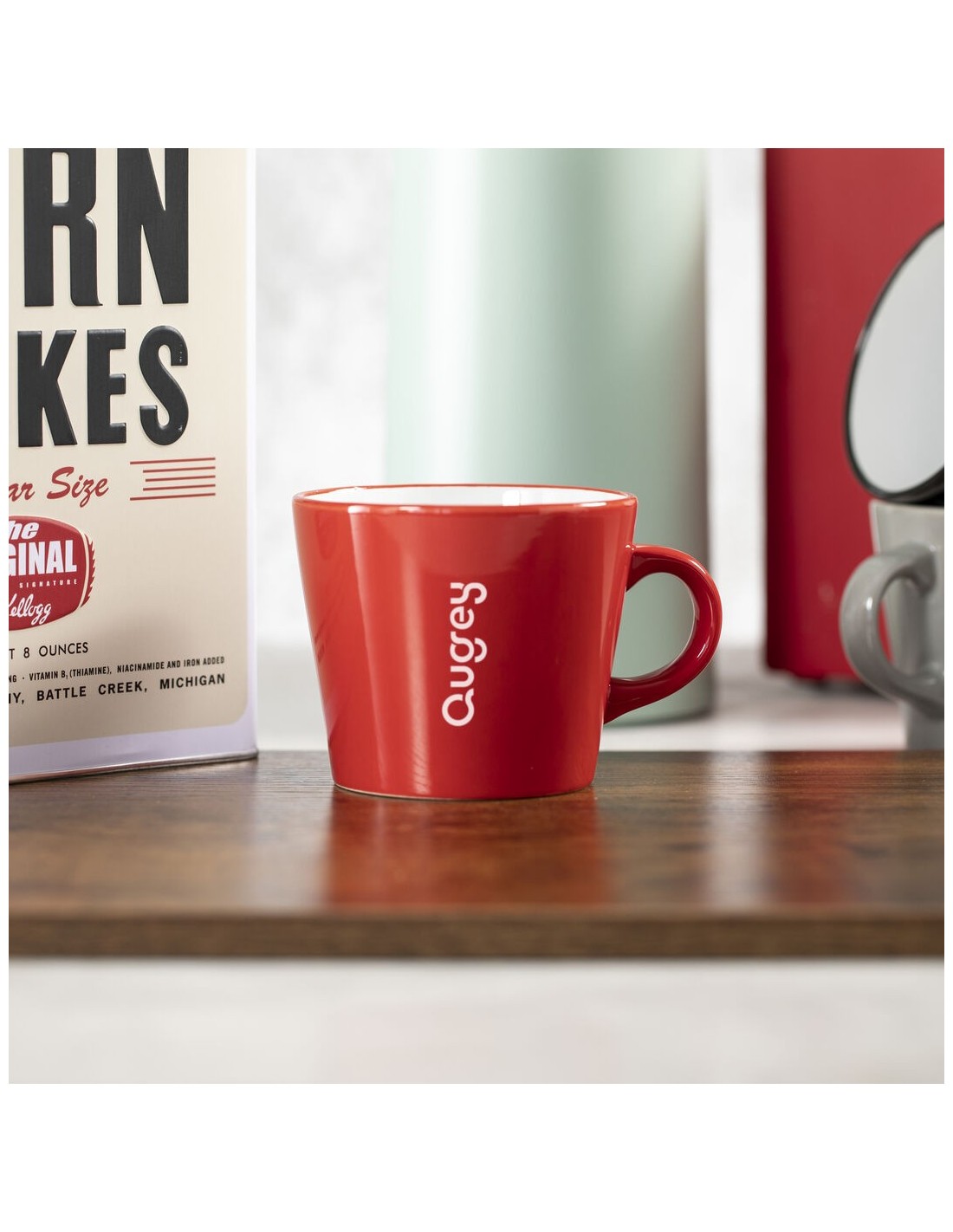 Taza de cerámica de 350ml de capacidad en combinación de interior en color blanco y exterior en variada gama de colores. Presentada en caja individual acabado kraft.