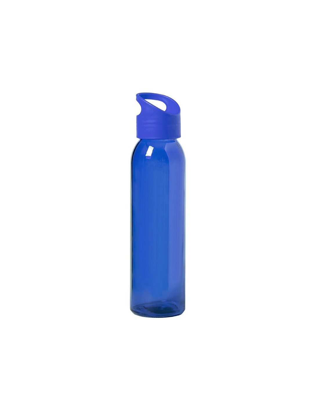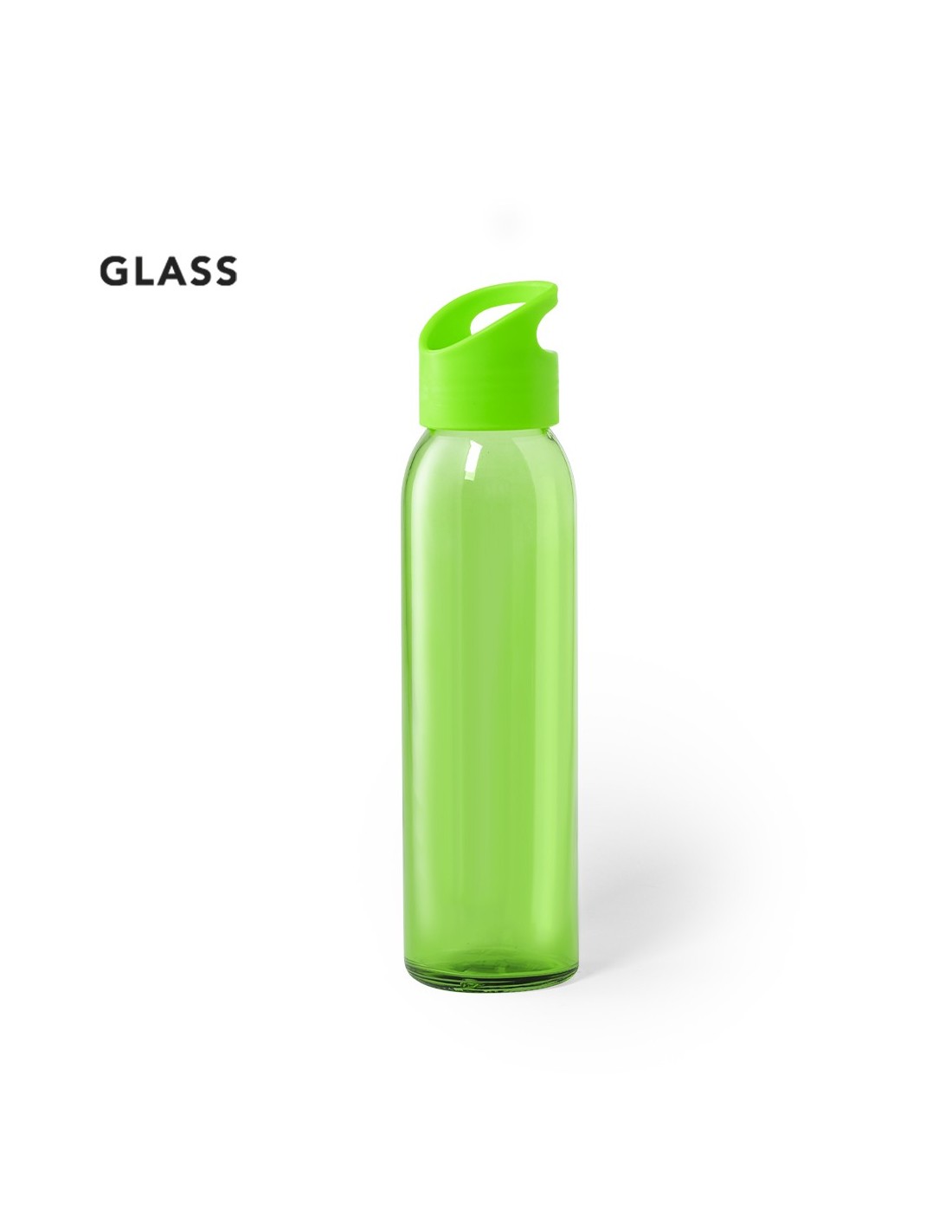 Bidón de 470ml de capacidad. Fabricado con cuerpo de cristal y disponible en variada gama de colores. Tapón a rosca en PP, libre de BPA, a juego. Presentado en caja individual de atractivo diseño.
