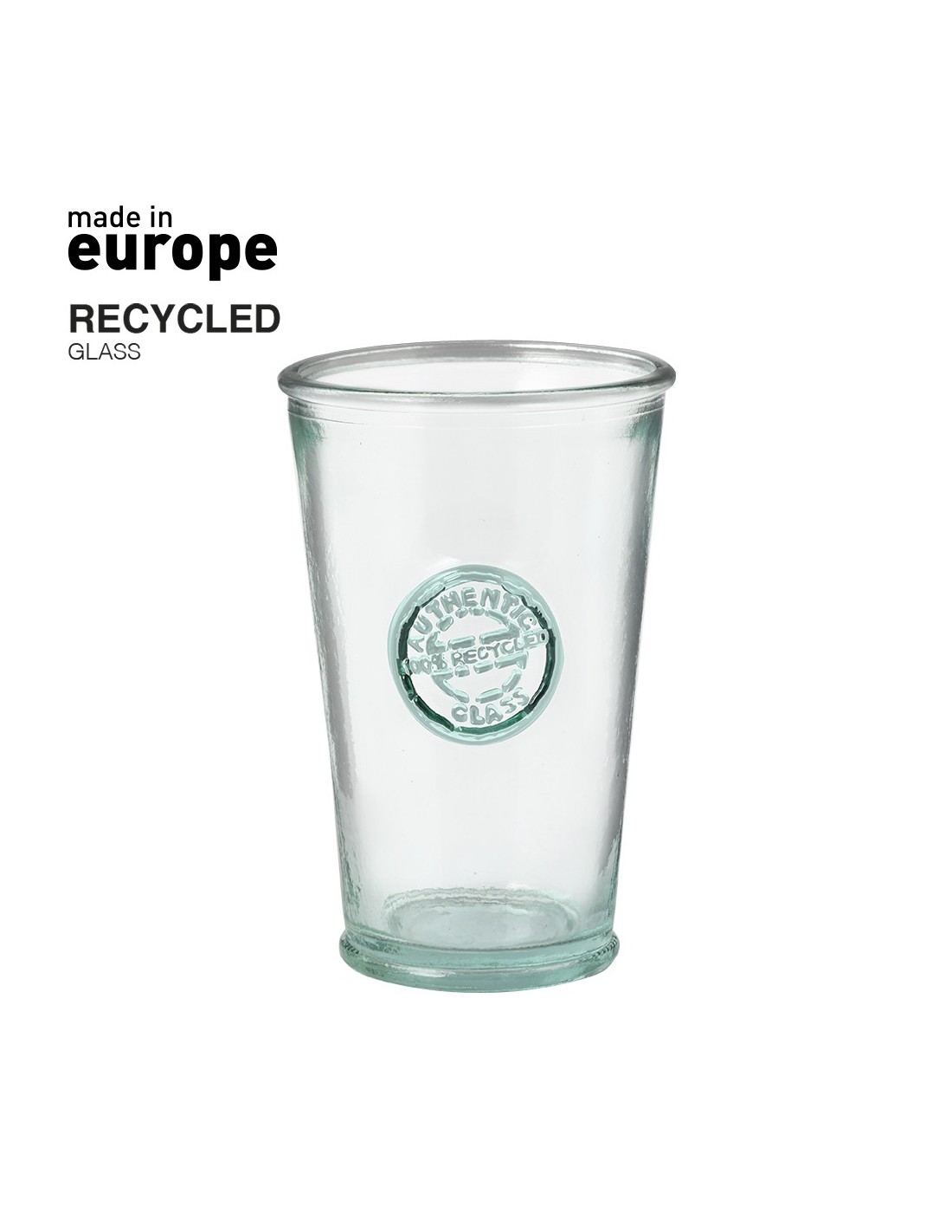 Vaso de línea nature de 300 ml de capacidad. De fabricación europea y hecho en cristal reciclado GRS (Global Recycled Standard / Estándar de Reciclaje Global), que garantiza el origen reciclado del material usado para fabricar el producto.