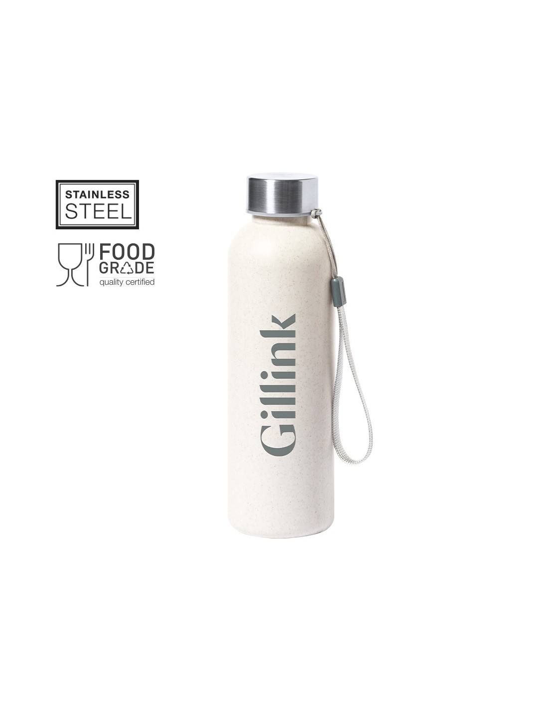 Bidón en PE veteado de 600ml de capacidad, libre de BPA. Con tapón de seguridad a rosca en acero inox y cinta de transporte. Certificación Food Grade, garantizando la seguridad cuando la bebida entra en contacto con el material usado para fabricar el producto.