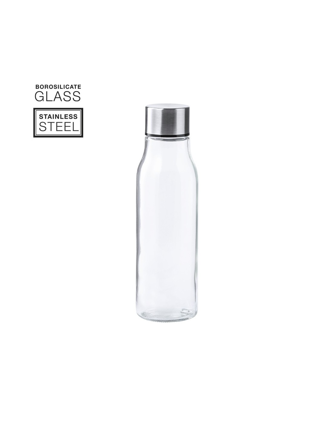 Bidón en alta calidad, de 550ml de capacidad. Fabricado en cristal de borosilicato, que ofrece una resistencia y durabilidad excepcionales, alargando su vida útil y pudiendo ser reutilizado infinidad de veces. Tapón en acero inox, libre de BPA. Presentado en atractiva caja de diseño.