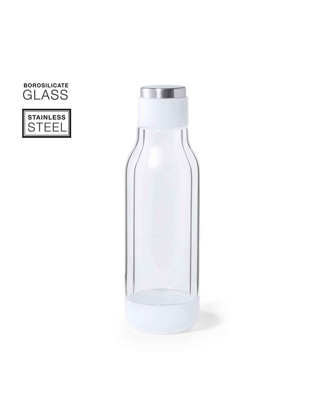 Bidón térmico de doble capa, de original diseño en alta calidad y de 500 ml de capacidad. Fabricado en cristal de borosilicato, que ofrece una resistencia, estética y durabilidad excepcionales, reduciendo así el consumo de productos de usar y tirar. Innovador cuerpo transparente que permite ver el interior en combinación con color blanco, fabricado con materiales de alto poder aislante. Presentado en atractiva caja de diseño.