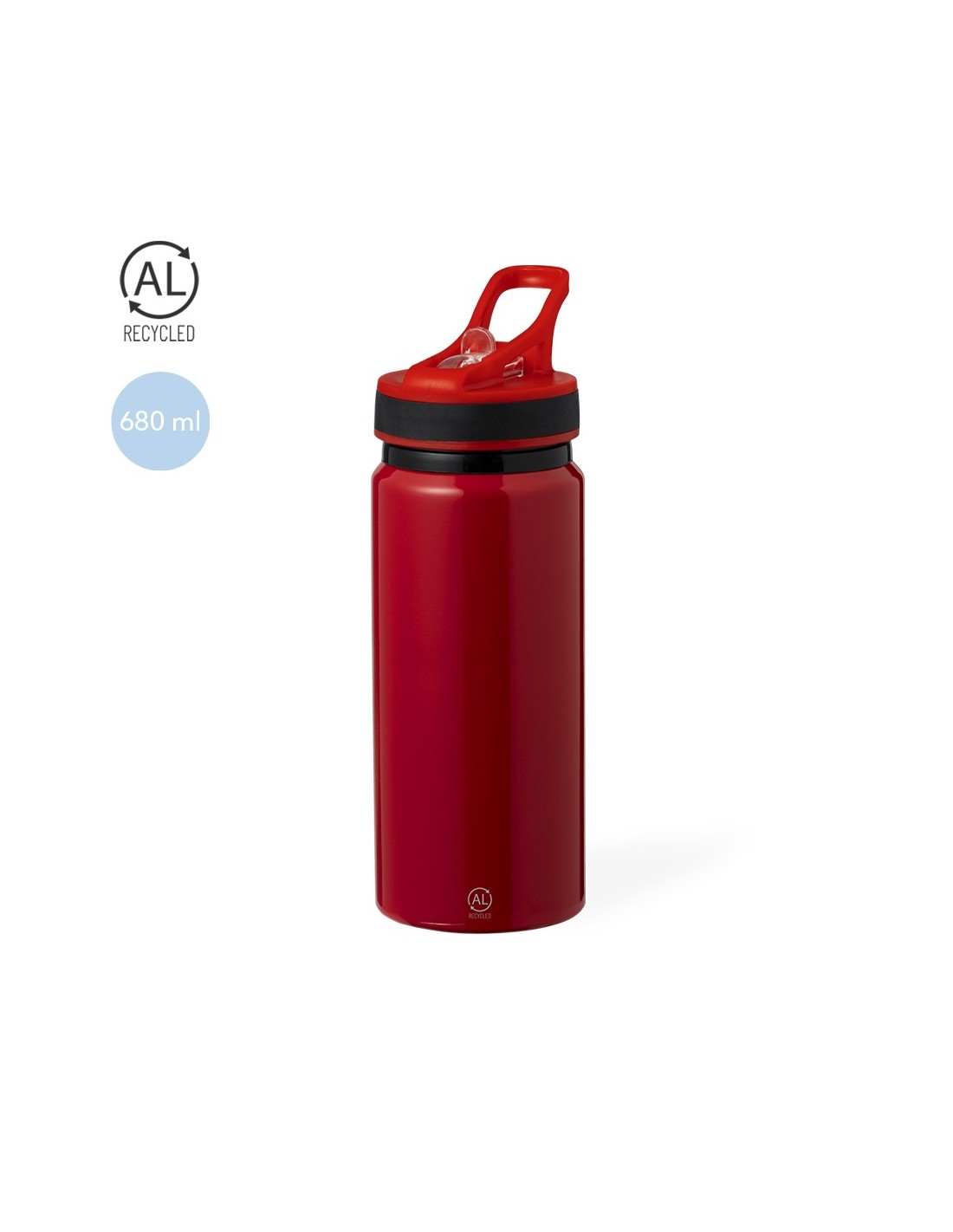 Bidón en Aluminio Reciclado de 680 ml de capacidad. Sistema de fácil apertura libre de BPA con dosificador de pajita y asa de transporte a juego. Con logotipo Aluminio Reciclado. Disponible en variada gama de colores brillantes y presentado en atractiva caja de diseño kraft. .El Aluminio Reciclado es un material con posibilidades de reciclaje casi infinitas, sin perder sus propiedades originales y consumiendo menos energía en este proceso..Certificación GRS (Global Recycled Standard / Estándar de Reciclaje Global), que garantiza el origen reciclado del material usado para fabricar el producto.