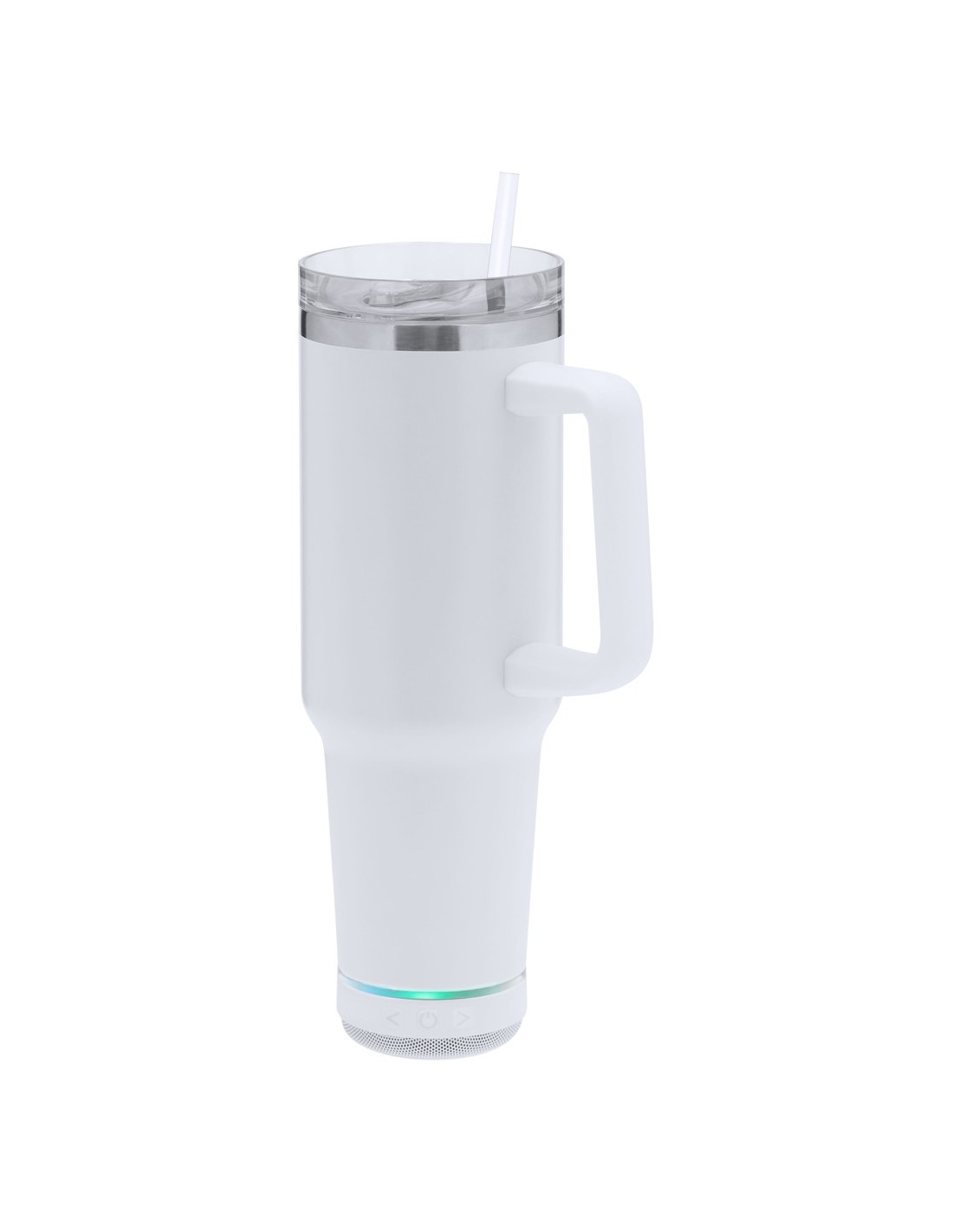 Taza térmica con Altavoz Bluetooth® 5.3 de 3W integrado. Con 1,25L de capacidad, asa ergonómica y fabricado en acero inoxidable de doble pared, asegurando una durabilidad máxima y un excelente mantenimiento de la temperatura de las bebidas, ya sean frías o calientes. Es ideal para tener en tu escritorio, mesa o en cualquier superficie donde disfrutar tranquilamente de tu bebida favorita. La tapadera cuenta con un cierre a presión y un dosificador de fácil apertura, libre de BPA, garantizando seguridad y facilidad de uso. Cuenta con base antideslizante, a juego, que proporciona una mayor estabilidad. El altavoz Bluetooth integrado en la base de la taza es fácilmente extraíble gracias a su sistema de rosca, e incluye iluminación inteligente LED RGB, que se sincroniza al ritmo de la música, creando una experiencia visual y auditiva única. Además, la función manos libres permite atender llamadas sin necesidad de dejar lo que se está haciendo.