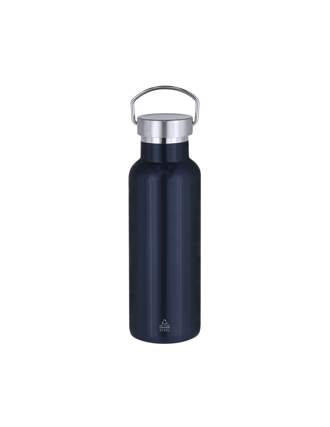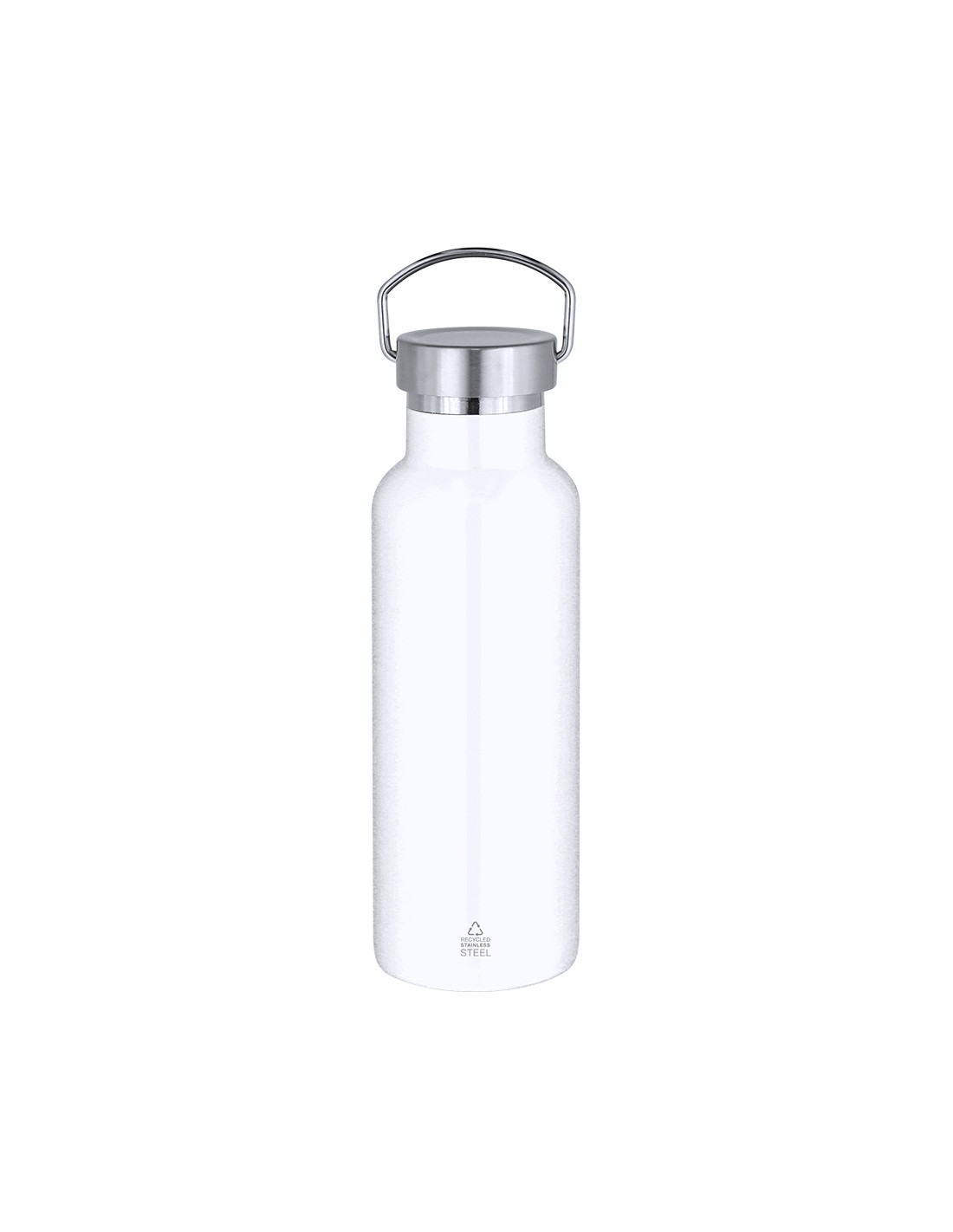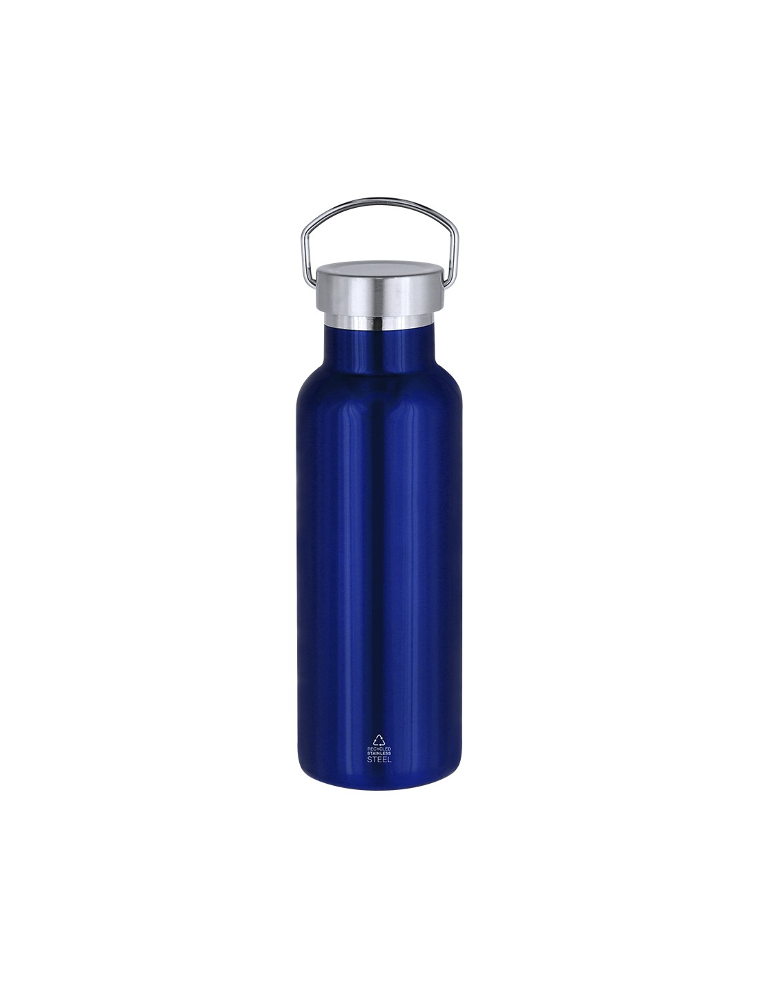 Bidón térmico fabricado en Acero Inoxidable Reciclado de doble pared y 500 ml de capacidad. Acabado en vivos colores con efecto metalizado. Tapón a rosca equipado con asa de trasporte. Incluye distintivo Acero Inoxidable Reciclado. El acero es uno de los materiales más demandados y que puede encontrarse casi en todas partes, desde productos de uso diario a grandes construcciones. Con innumerables propiedades, entre las que cabe destacar la durabilidad y su alto grado de reutilización, convirtiéndolo en una alternativa muy valorada en soluciones de sostenibilidad. Debidamente tratado, permite obtener nuevos recursos de infinita utilización.