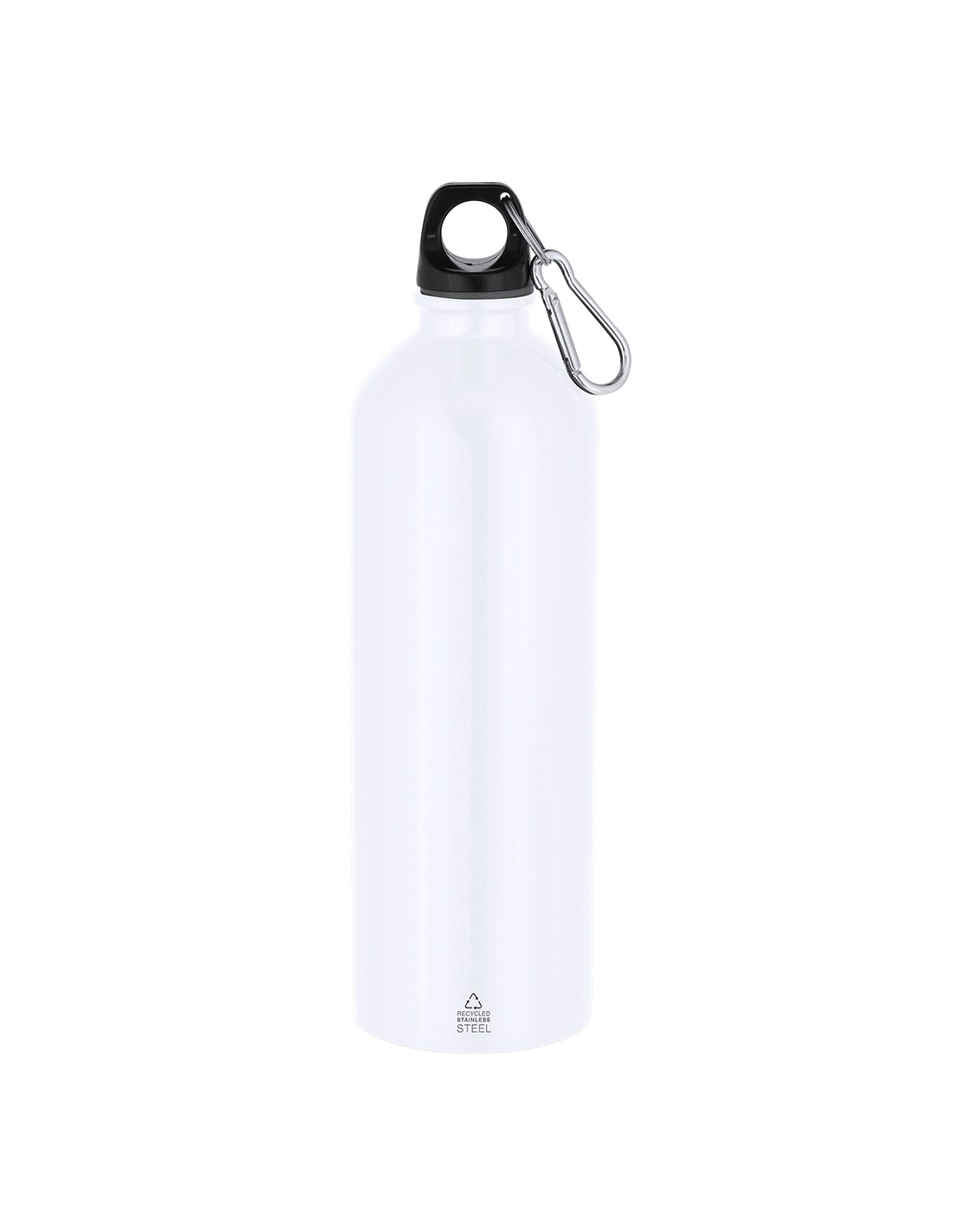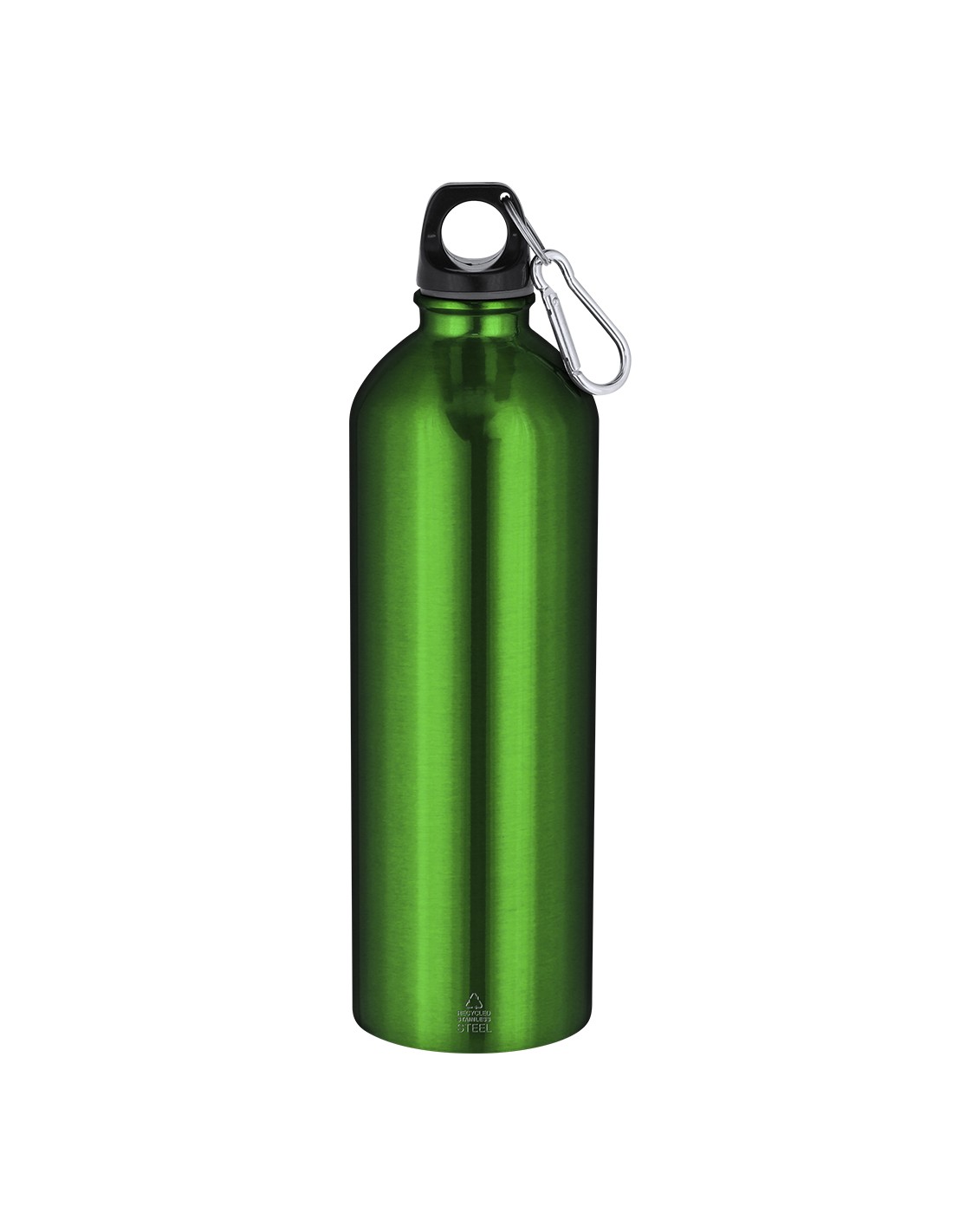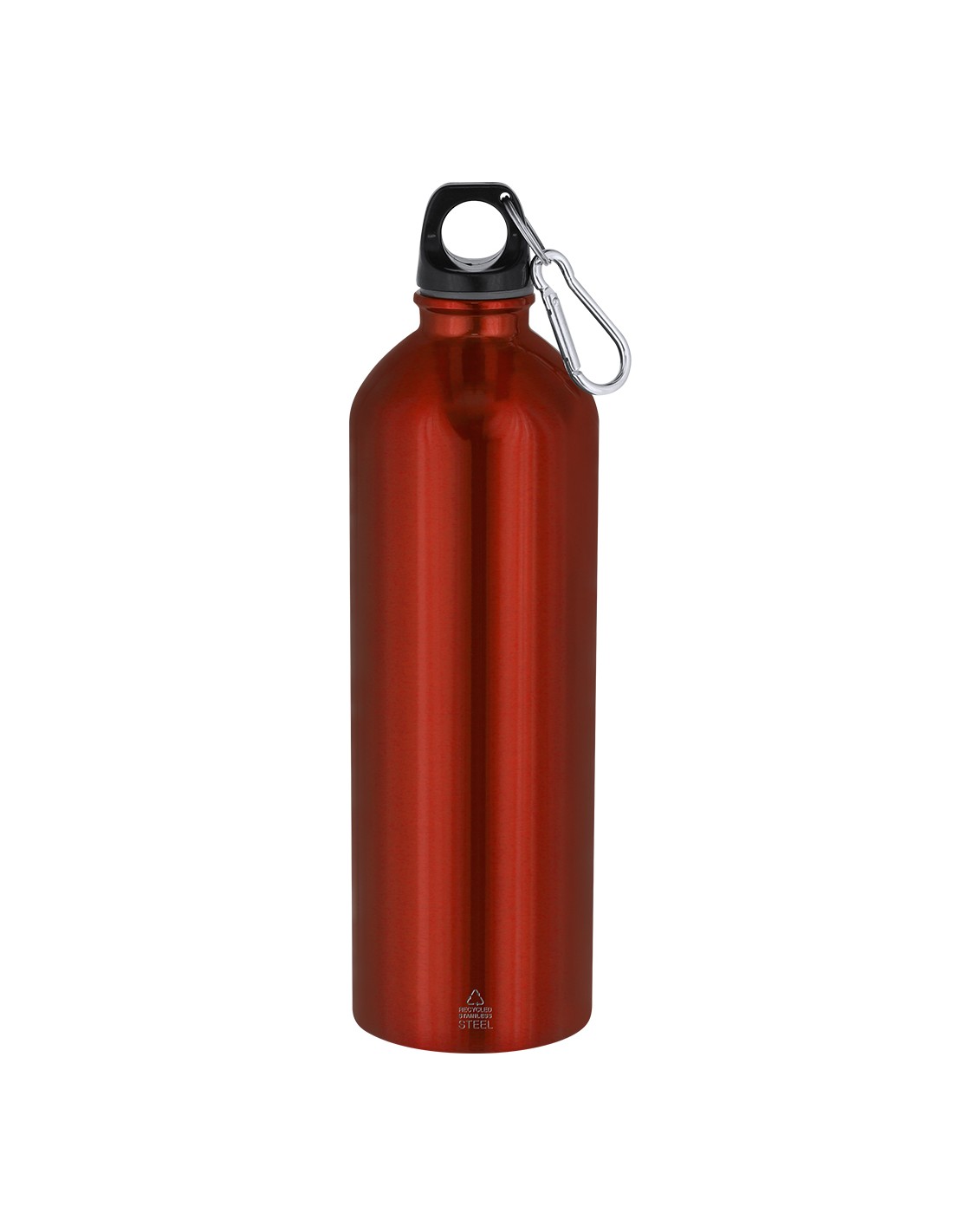 Bidón con 800 ml de capacidad. Fabricado en Acero Inoxidable Reciclado con acabado metalizado. Tapón negro de cierre a rosca para garantizar un sellado óptimo. Incluye mosquetón metálico que facilita su transporte. Con distintivo Acero Inoxidable Reciclado. El acero es uno de los materiales más demandados y que puede encontrarse casi en todas partes, desde productos de uso diario a grandes construcciones. Con innumerables propiedades, entre las que cabe destacar la durabilidad y su alto grado de reutilización, convirtiéndolo en una alternativa muy valorada en soluciones de sostenibilidad. Debidamente tratado, permite obtener nuevos recursos de infinita utilización.