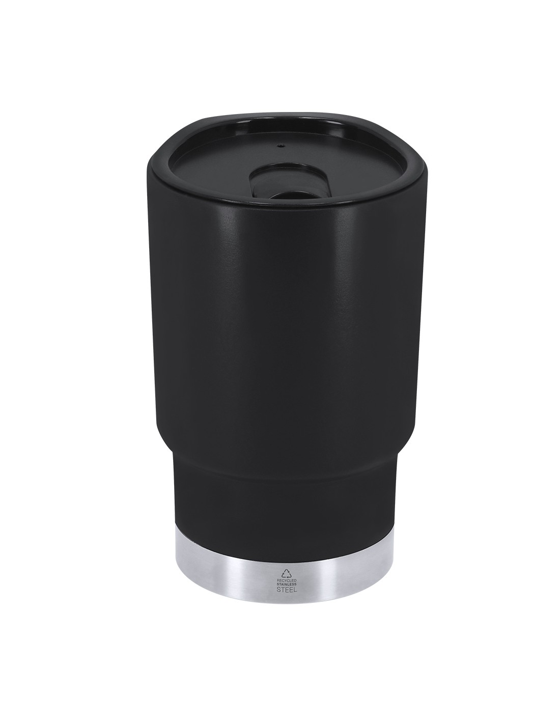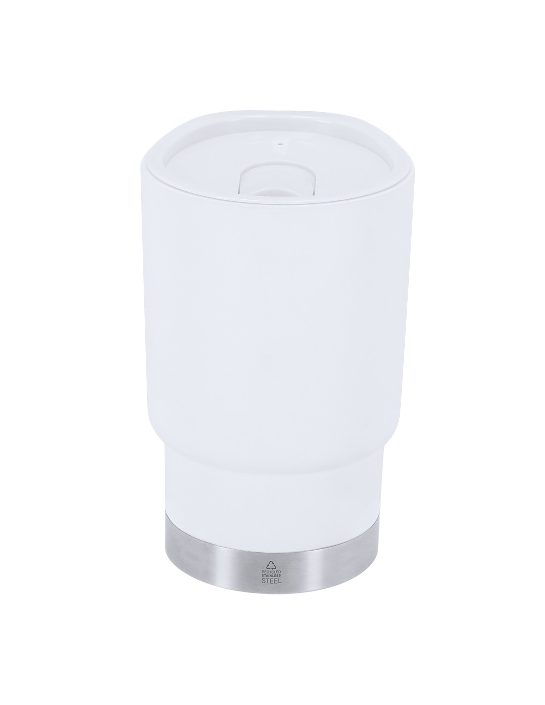 Vaso térmico de 380 ml de capacidad. Fabricado en resistente PP Reciclado de doble pared en combinación con base en Acero Inox Reciclado. Tapa con dosificador de fácil apertura, libre de BPA. Es ideal para tener en tu escritorio, mesa o en cualquier superficie donde disfrutar tranquilamente de tu bebida favorita. Con certificación Food Grade, garantizando la seguridad cuando los alimentos entran en contacto con el material usado para fabricar el producto. Con distintivo de Acero Inox Reciclado. El PP reciclado es un plástico reciclado y altamente reciclable, de gran resistencia y apto para multitud de aplicaciones. El acero es uno de los materiales más demandados y que puede encontrarse casi en todas partes, desde productos de uso diario a grandes construcciones. Con innumerables propiedades, entre las que cabe destacar la durabilidad y su alto grado de reutilización, convirtiéndolo en una alternativa muy valorada en soluciones de sostenibilidad. Debidamente tratado, permite obtener nuevos recursos de infinita utilización.