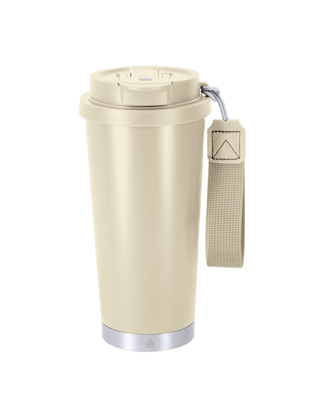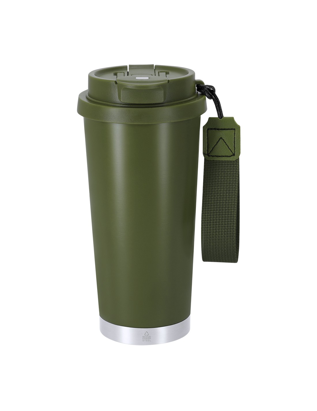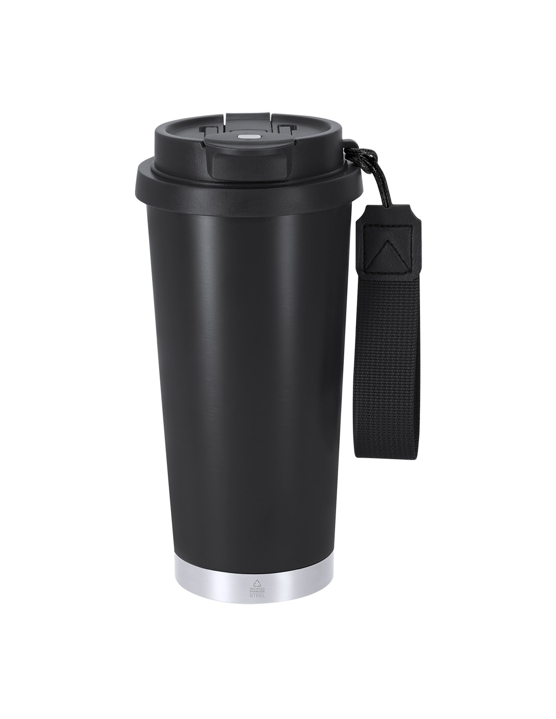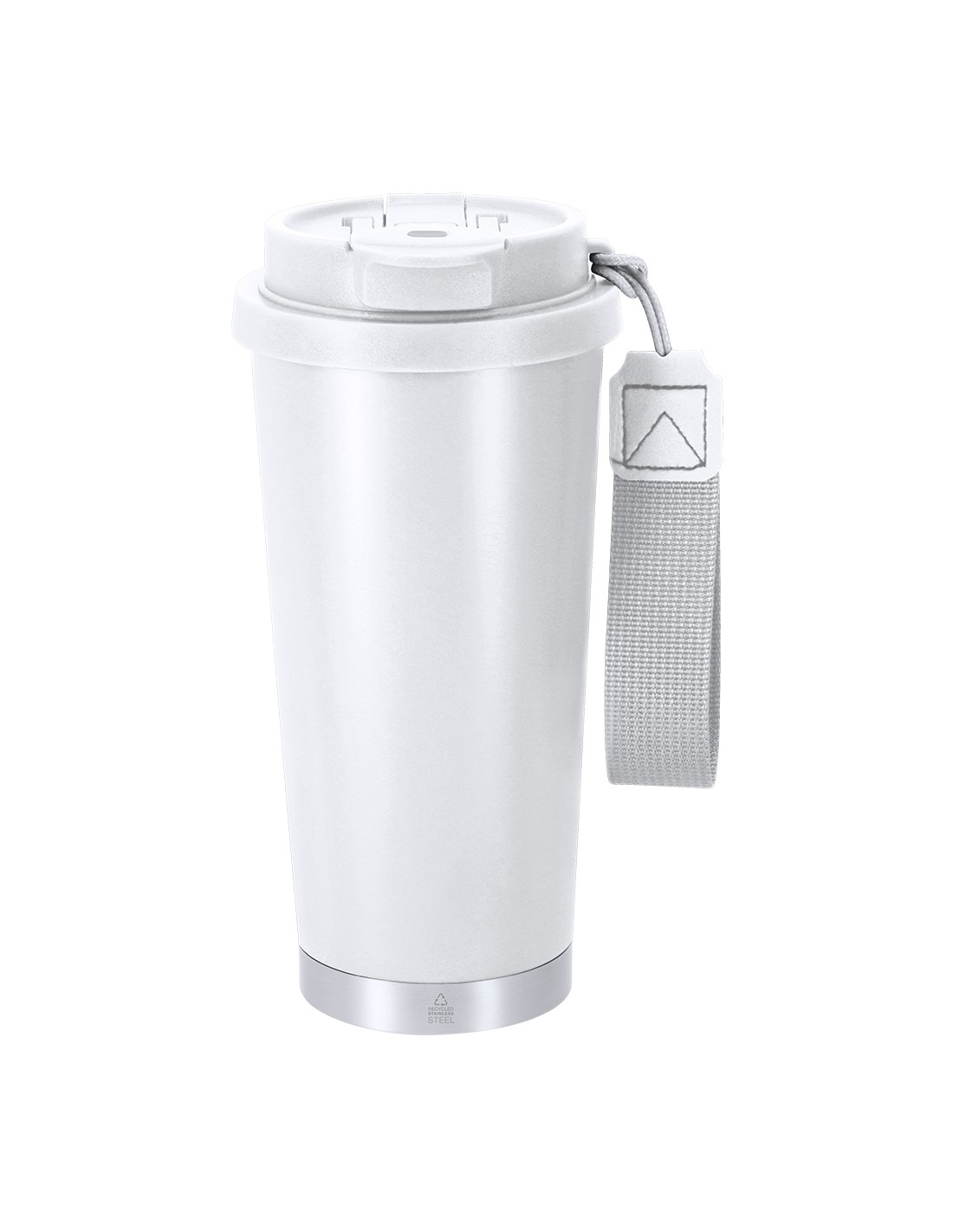 Vaso térmico con 500 ml de capacidad. Fabricado en Acero Inoxidable Reciclado. Cuenta con doble sistema de bebida: orificio con cierre hermético y pajita integrada, adaptándose a las preferencias de uso. Con tapa de sistema de sellado hermético.Incluye práctica cinta de transporte, ideal para llevarlo fácilmente en cualquier situación. Libre de BPA. Con distintivo Acero Inoxidable Reciclado. El acero es uno de los materiales más demandados y que puede encontrarse casi en todas partes, desde productos de uso diario a grandes construcciones. Con innumerables propiedades, entre las que cabe destacar la durabilidad y su alto grado de reutilización, convirtiéndolo en una alternativa muy valorada en soluciones de sostenibilidad. Debidamente tratado, permite obtener nuevos recursos de infinita utilización.