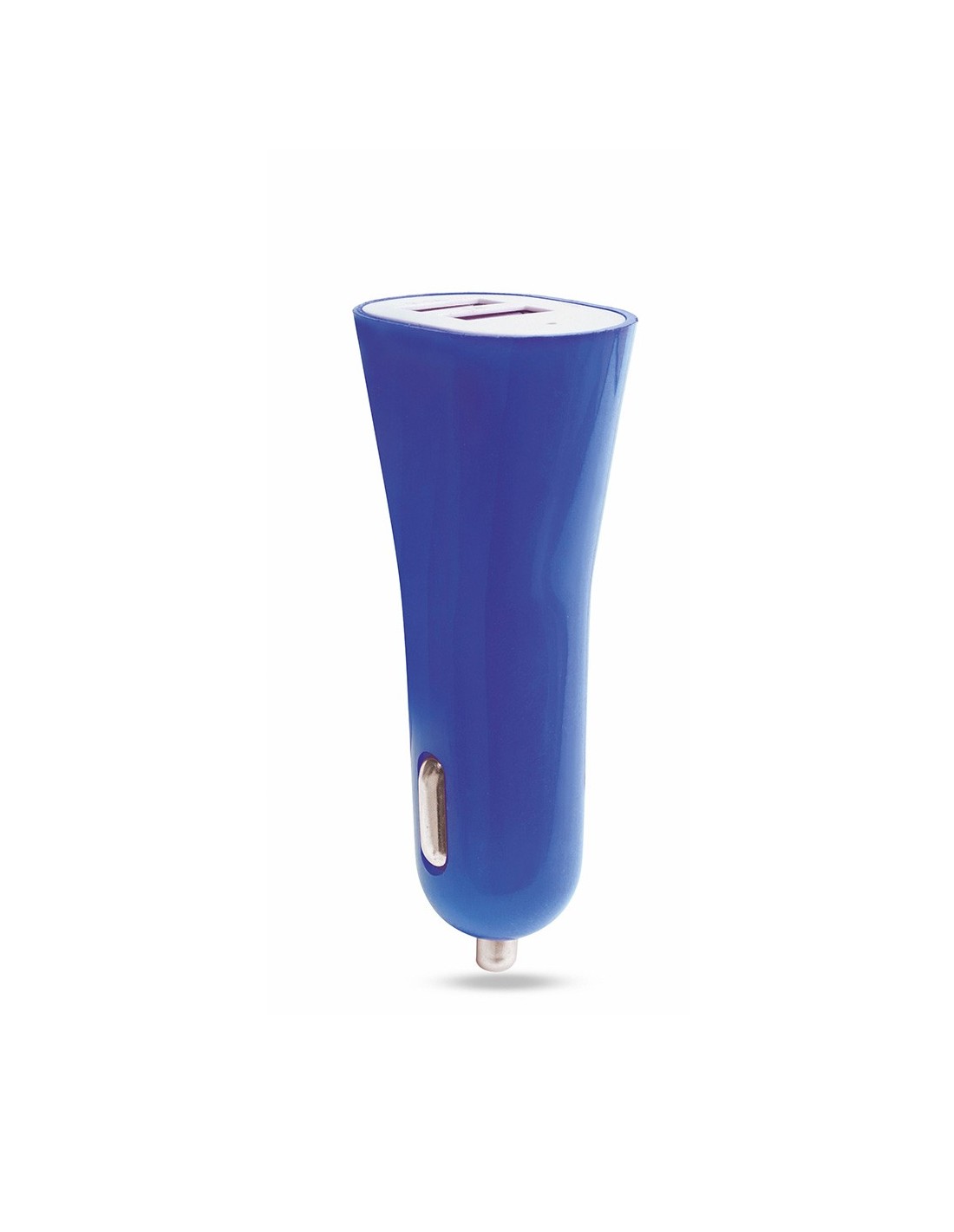 Cargador USB para mechero de coche de 2.100 mAh de capacidad de carga en desenfadado diseño bicolor. Con salida USB dual que permite la carga simultánea de dos dispositivos móviles. Tapa translúcida con led indicador de carga y presentado en caja individu