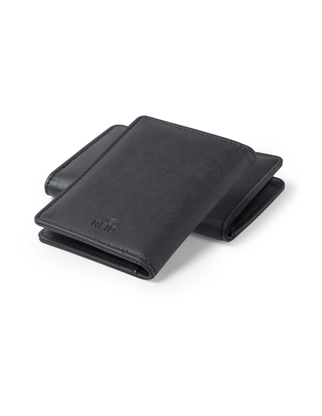 Tarjetero con tecnología de seguridad RFID (Identificación por Radio Frecuencia) que mantiene seguros los datos de la tarjetas. De elegante diseño, suave acabado en polipiel negra y con 8 compartimentos. Presentado en caja individual.
