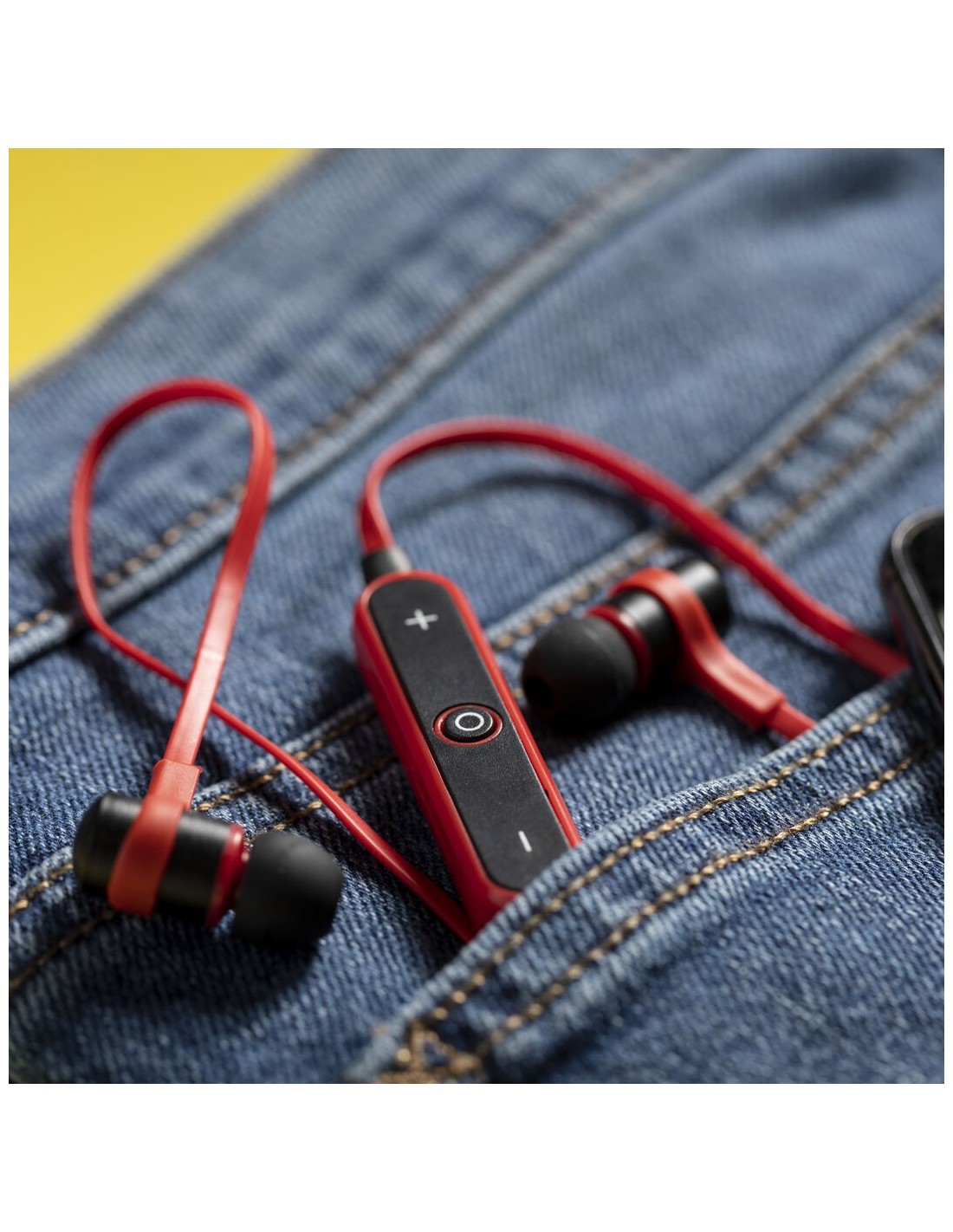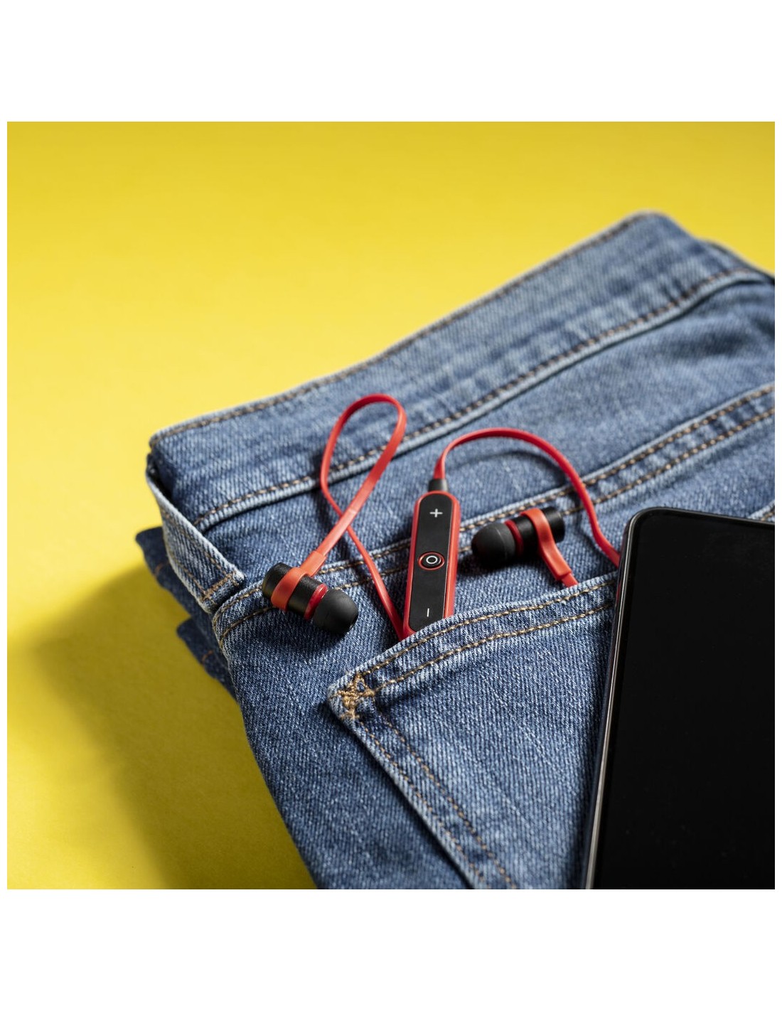 Cómodos Auriculares intraurales de conexión bluetooth y desenfadado diseño bicolor. De suave tacto y especialmente diseñados para la práctica de actividades deportivas y de ocio, incluyen botones de control integrados en el cable. Con accesorio de sujeció