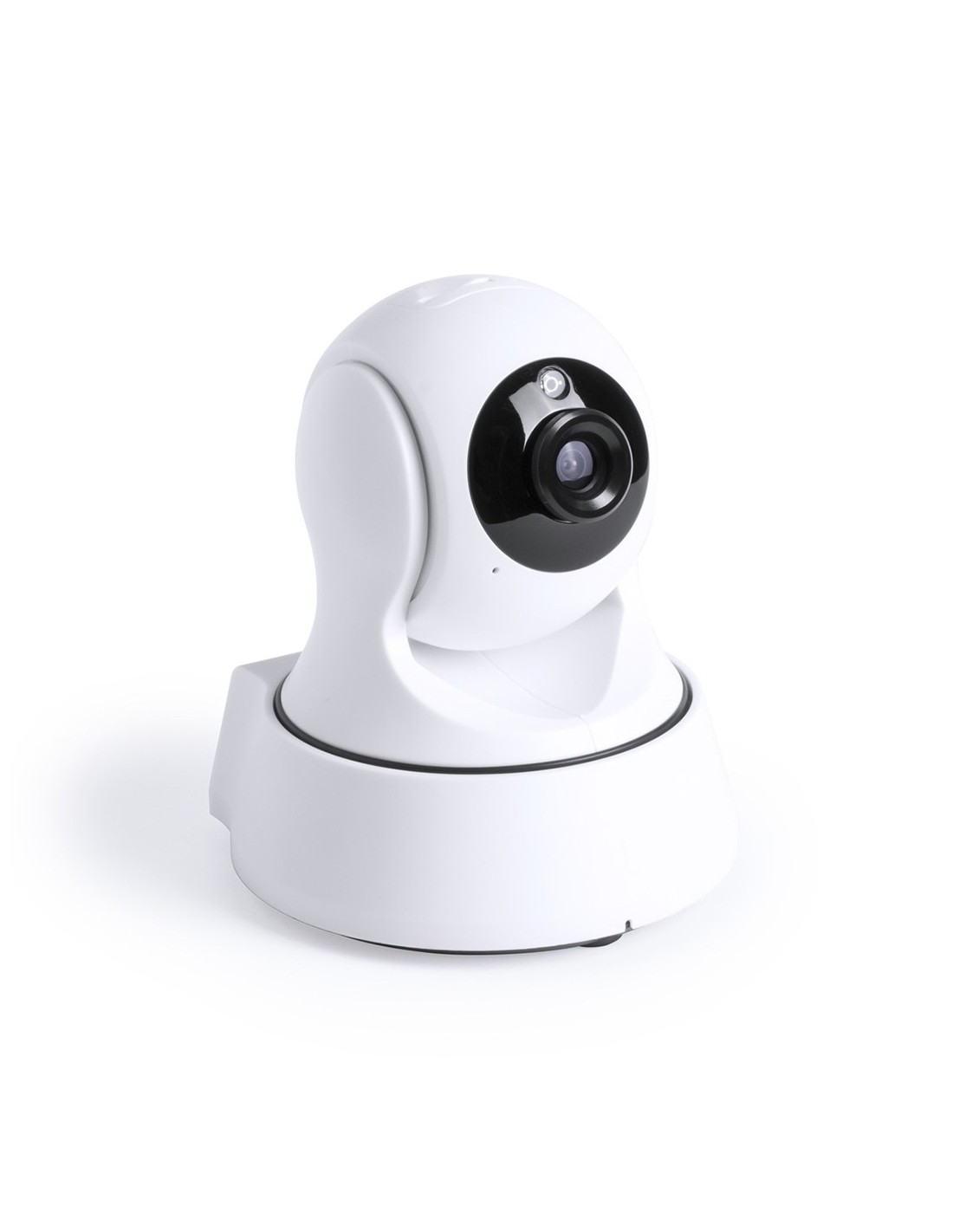 Cámara de seguridad inteligente HD 360° con soporte y fijación para pared. Control y visionado remoto, conexión wifi, sistema de notificaciones push, captura de vídeo y audio en tiempo real, cámara de fotos, altavoz, detector de movimiento con visión noct