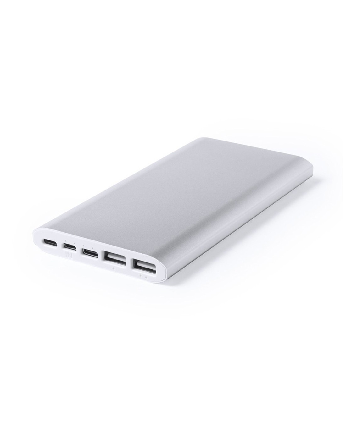 Batería auxiliar externa de gran capacidad de carga -10.000 mAh- con cuerpo acabado en resistente aluminio. Con salida USB dual para cargar dos dispositivos simultáneamente y 3 conexiones para entrada de corriente: lightning, micro USB y tipo C. Ledes ind