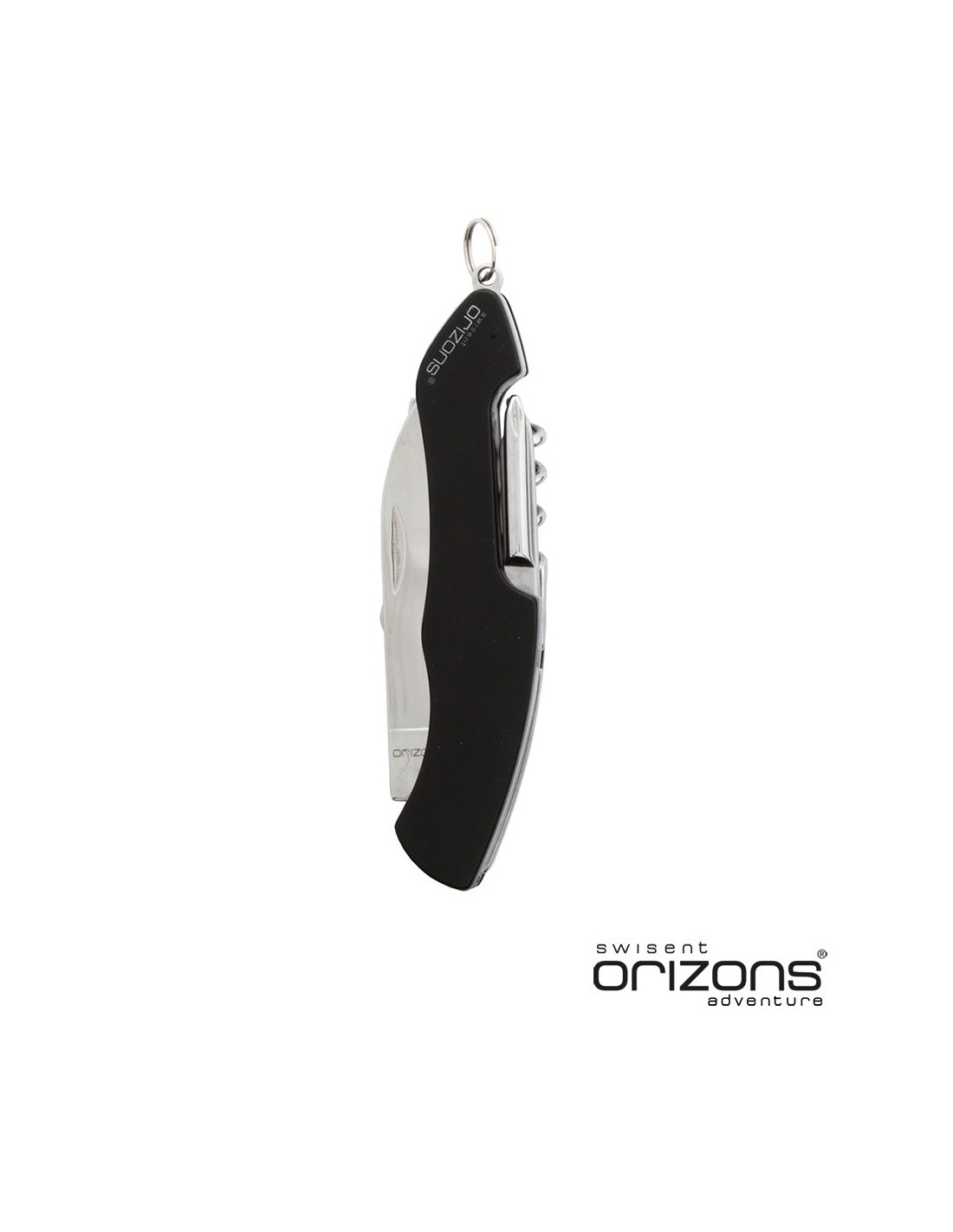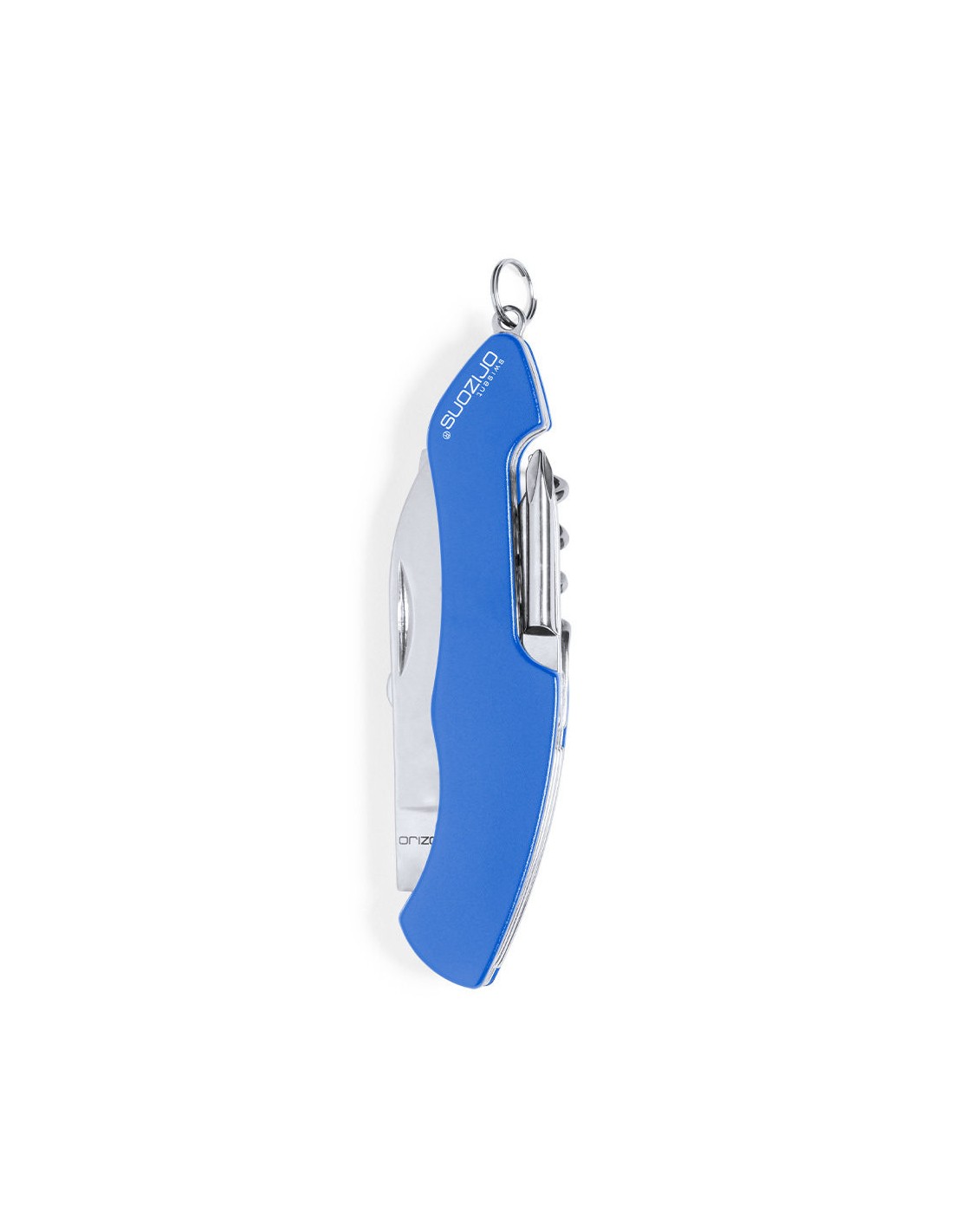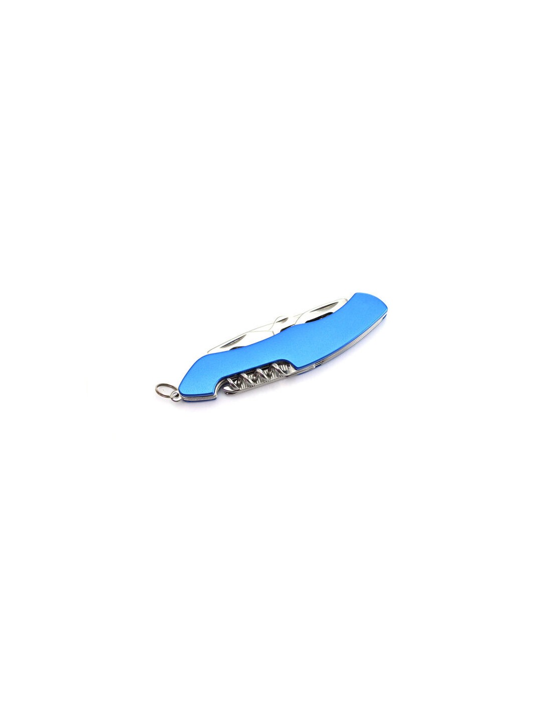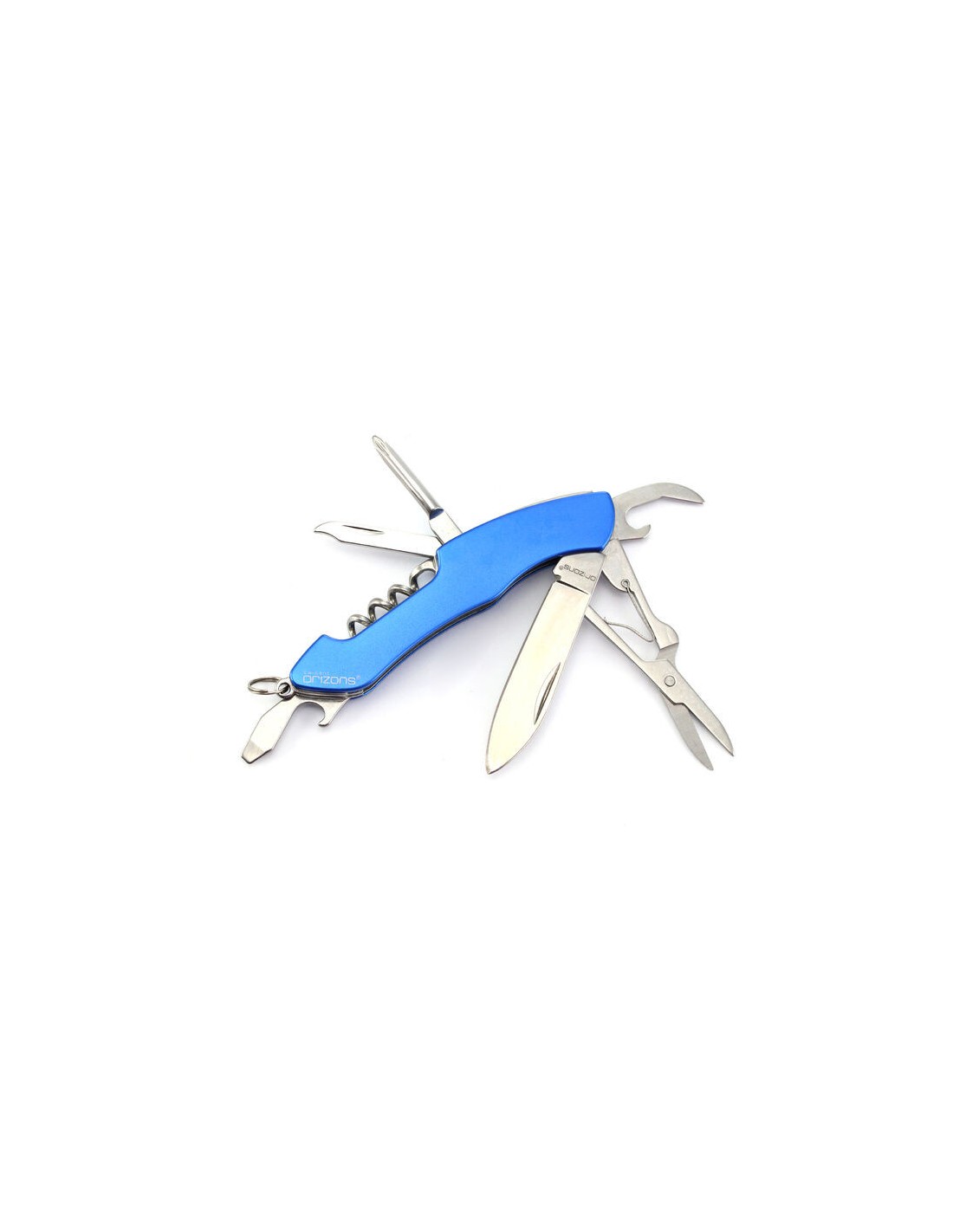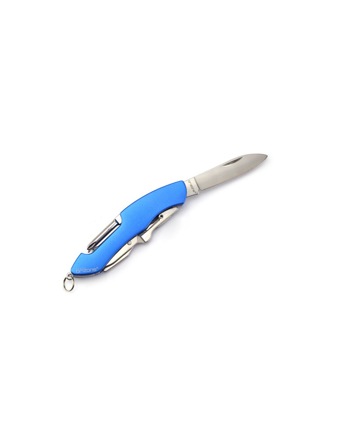 Navaja multiusos de orizons con accesorios de acero inox de 10 funciones y mango de aluminio en vivos colores. Con navaja, tijeras, abrelatas, abrebotellas con destornillador plano, destornillador de punta de estrella, punzón con lima y sacacorchos. Con a